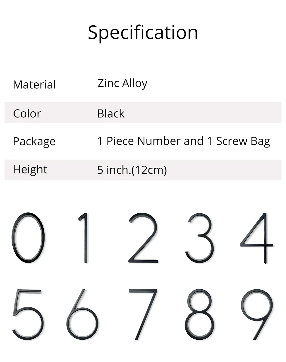 12 см большой 3D современный дом номер двери домашний адрес Номера для дома цифровой двери открытый знак пластины 5 дюймов. #0-9 черный