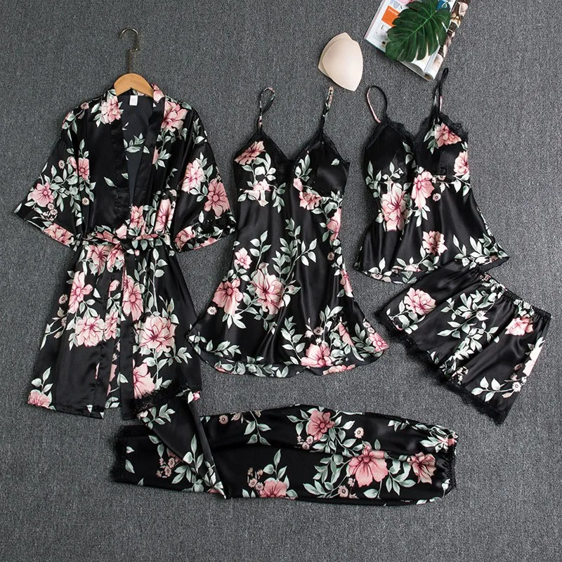Ночная рубашка Женская атласная, кружевная, 5 шт.