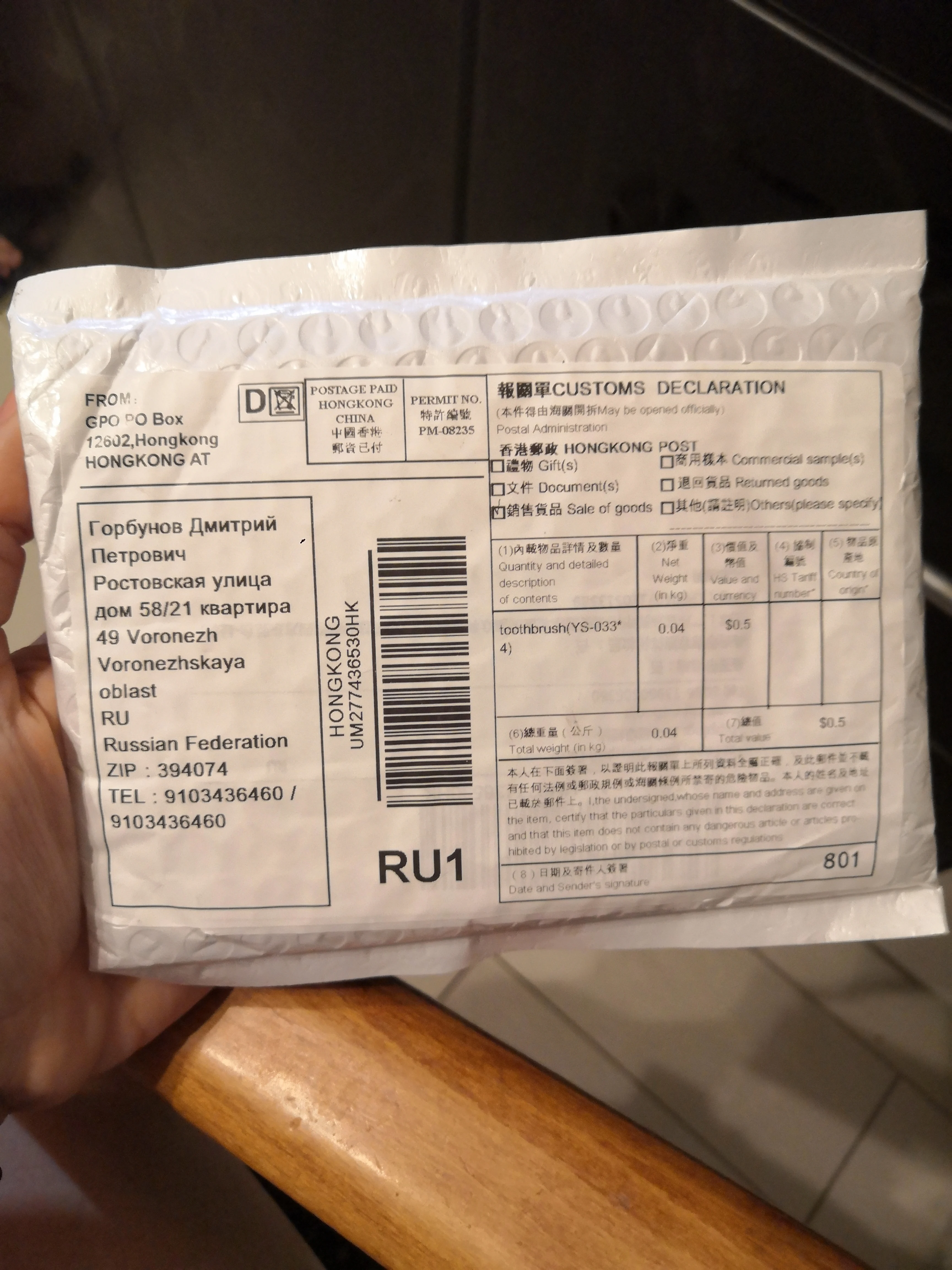 Страна: RU Доставка: Cainiao Super Economy 26.09.2020