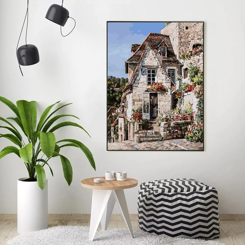 HUACAN живопись по номеру Замок рисунок на холсте Ручная роспись ис...