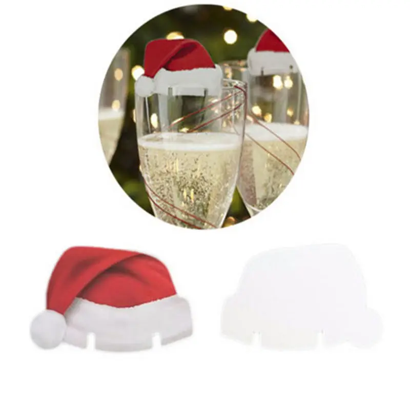 10 шт.лот, декоративные открытки для домашнего стола, Рождественская шапка Санты, бокал для вина, новогодние украшения для вечерние, рождественские украшения