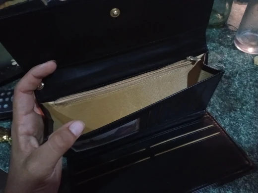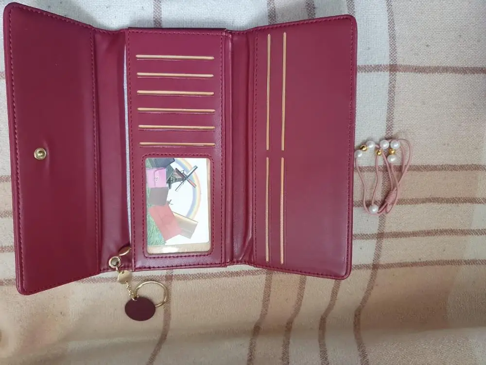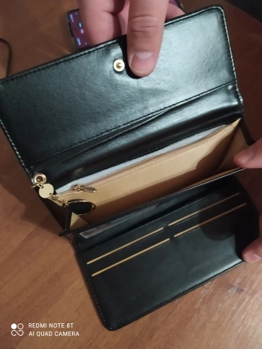 Кошелек сразу показался хороший, но в использовании не совсем удобный, так как отделения для купюр маленькие и узкие, доставка быстрая, продавец положил записочку и резинку для волос в подарок. После двух недель использования разошлась молния.