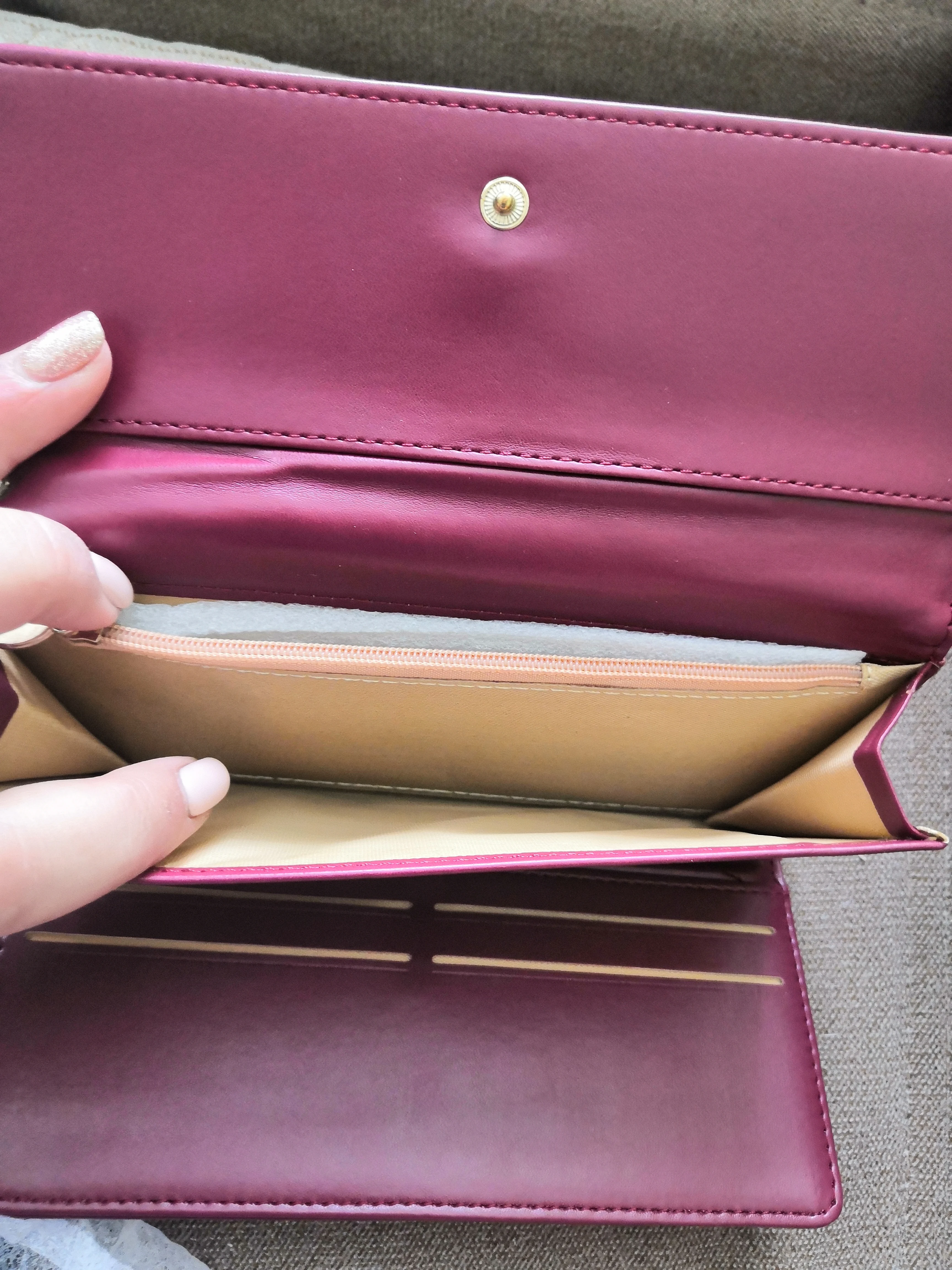 кошелек хороший, запаха почти нет, надеюсь будет достаточно вместительным. доставка быстрая