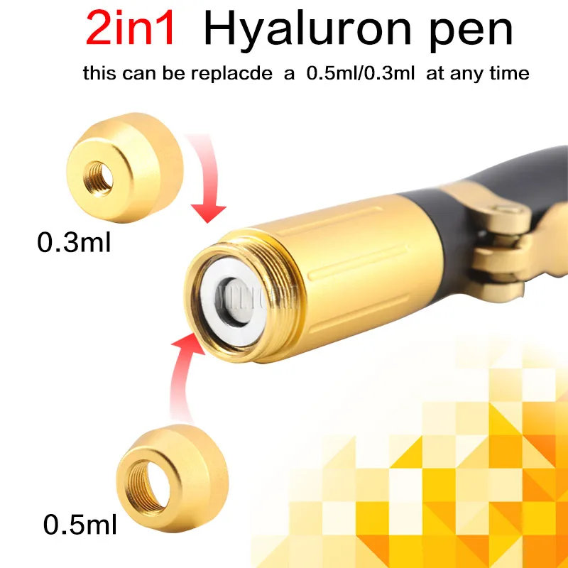 2in 1 мезо инъекции пистолет гиалурон ручка 0,3 мл и 0,5 мл Золото Гиалуроновая кислота ручка наполнитель для губ против морщин инжектор небулайзер инструмент для ухода за кожей