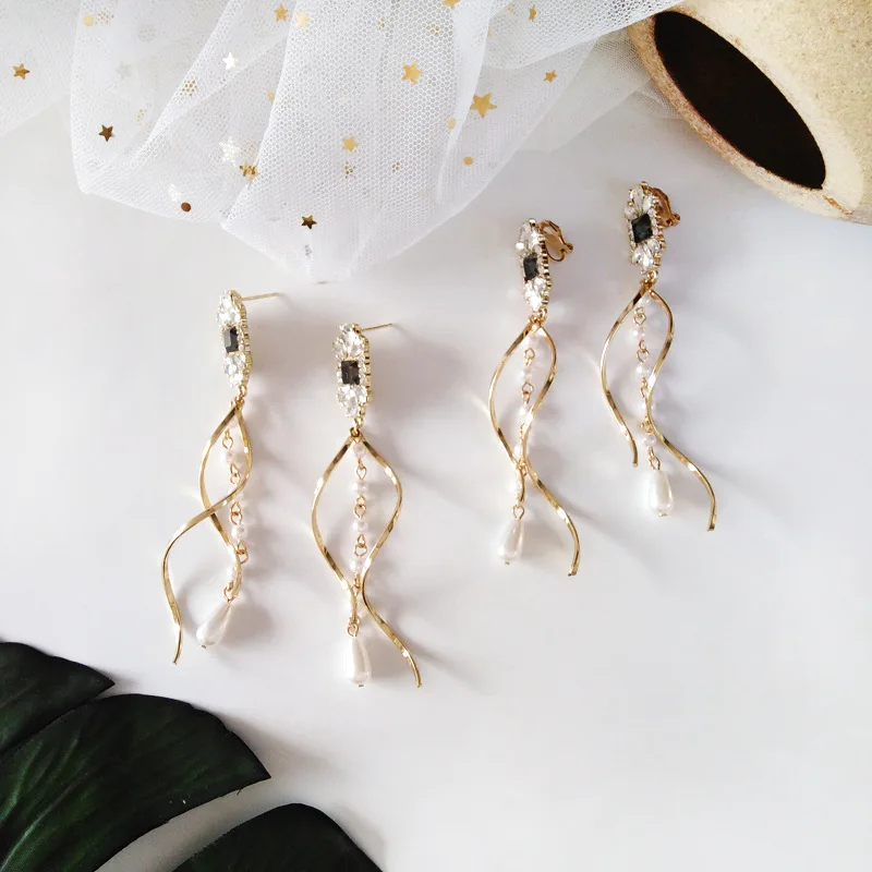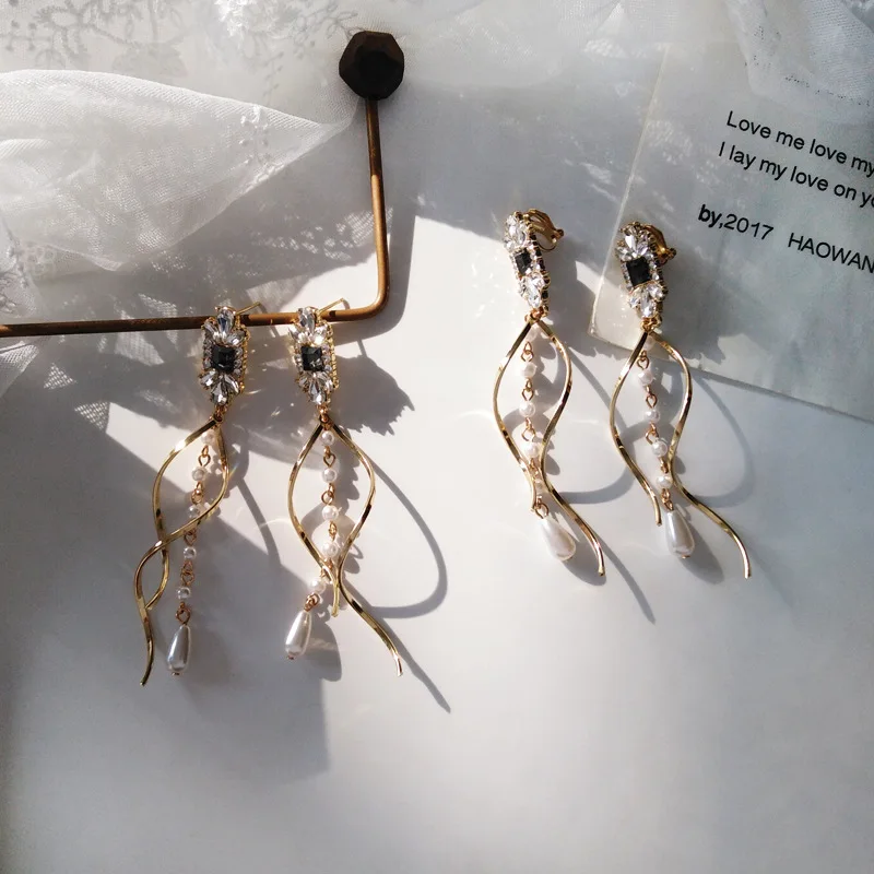 Женские длинные серьги-клипсы в стиле барокко, в форме капли воды, без прокола, жемчужные клипсы