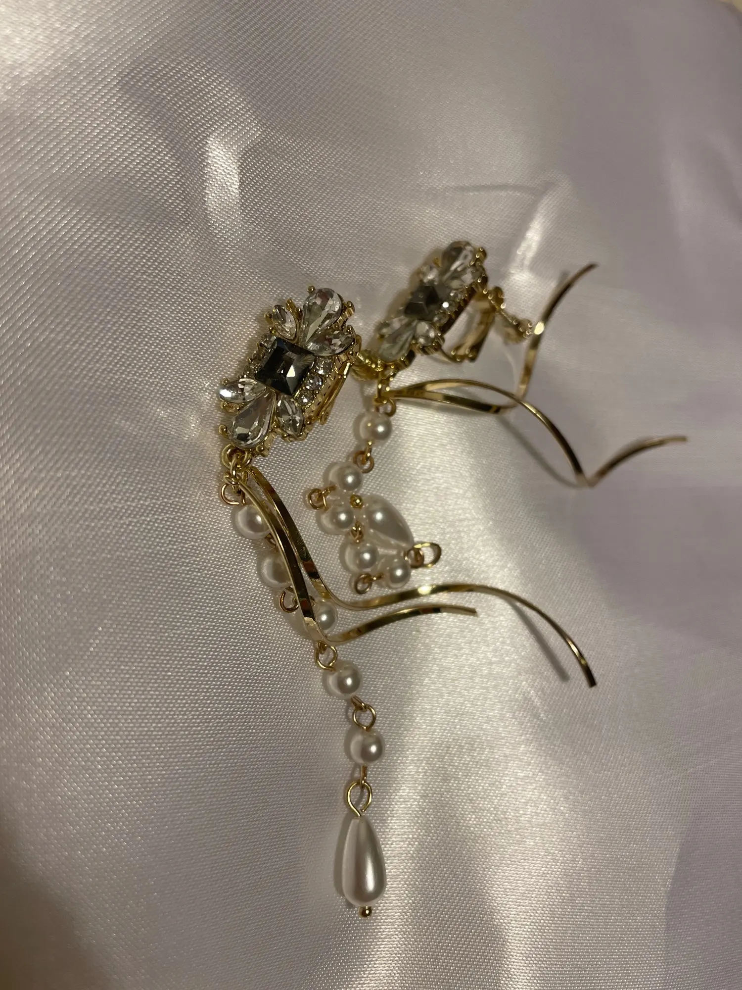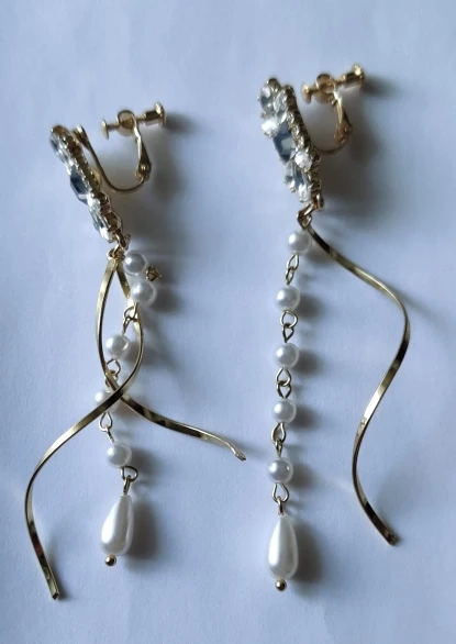Decoration on earringsLong PEARLS Clip Earrings