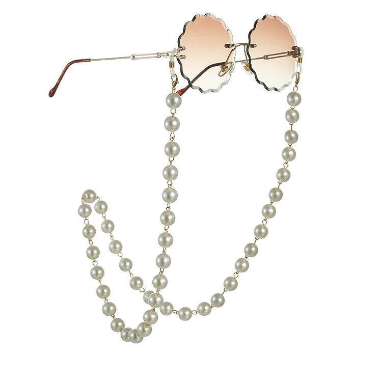 Цепочка для солнцезащитных очков с шейным держателем, белый жемчуг с бисером, шнур для очков для чтения, держатель для очков, веревка, аксессуары