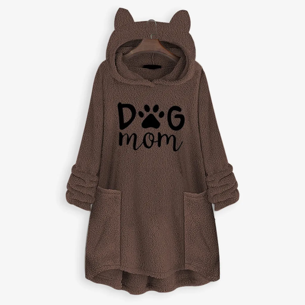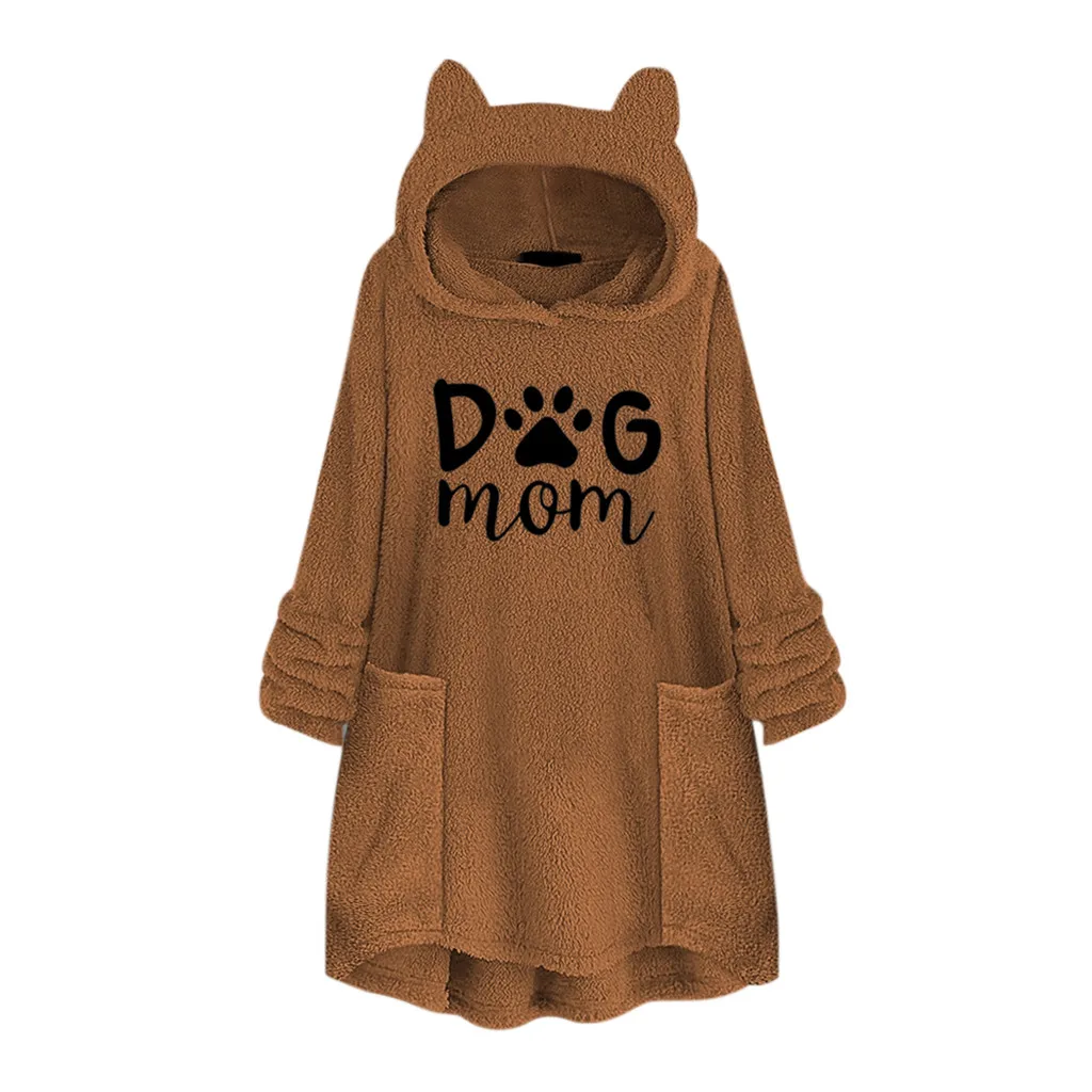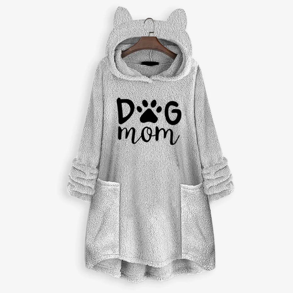 Толстовки с капюшоном и вышитыми кошачьими ушками; Женская блузка с капюшоном; Зимние теплые флисовые куртки с карманами; Плюшевый пуловер