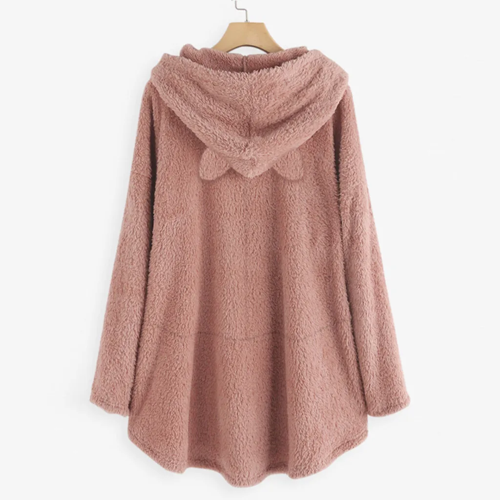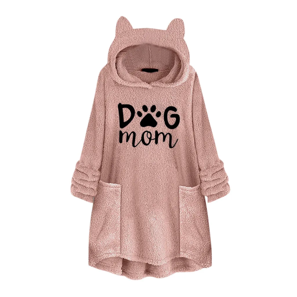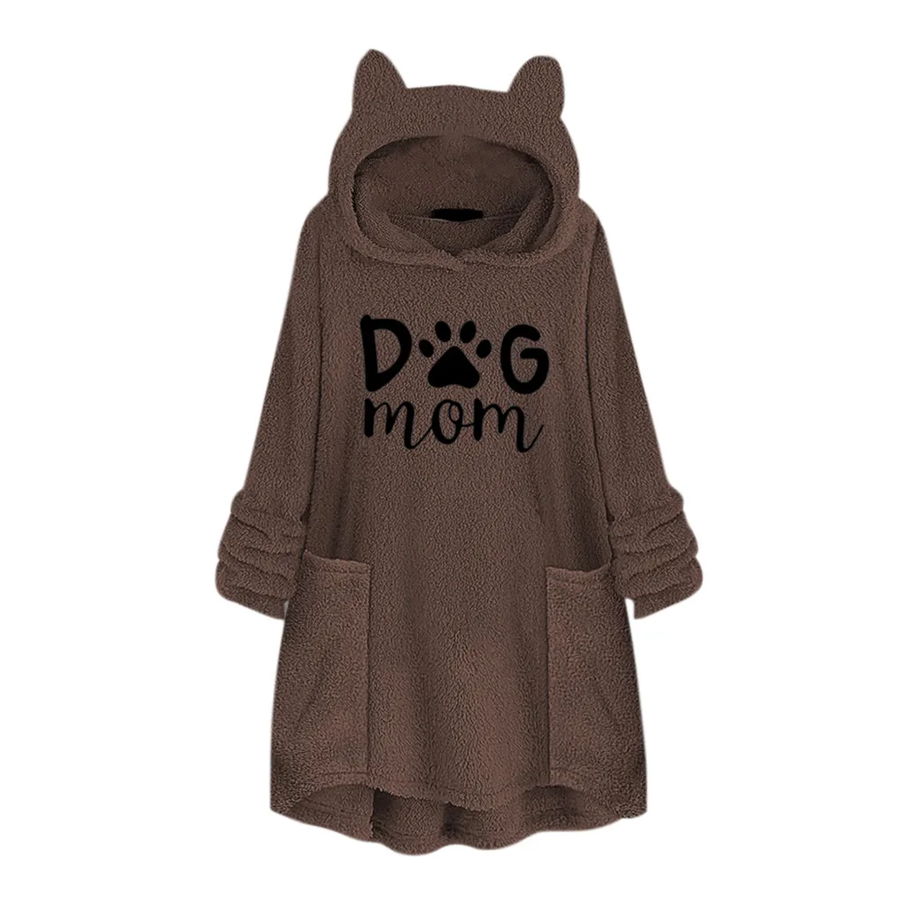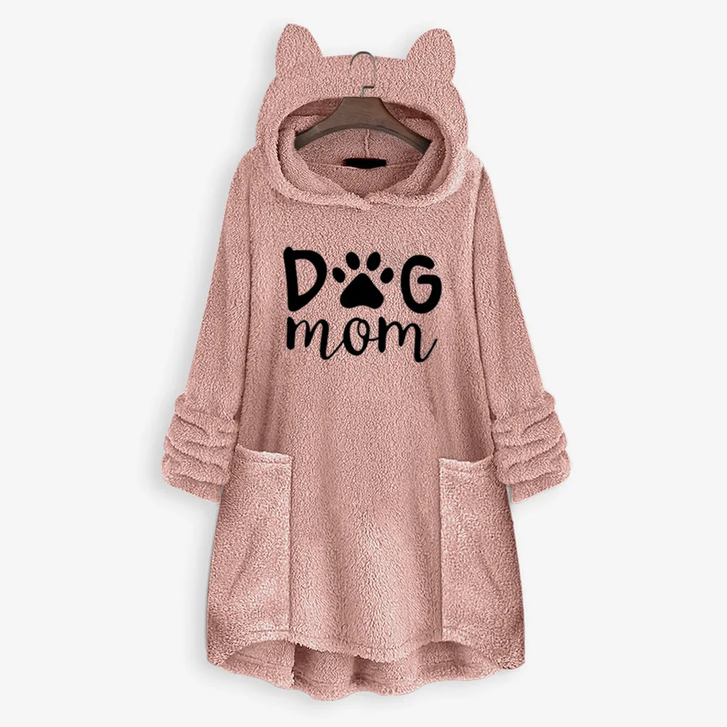 Толстовки с капюшоном и вышитыми кошачьими ушками; Женская блузка с капюшоном; Зимние теплые флисовые куртки с карманами; Плюшевый пуловер