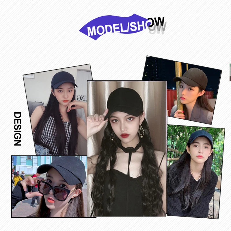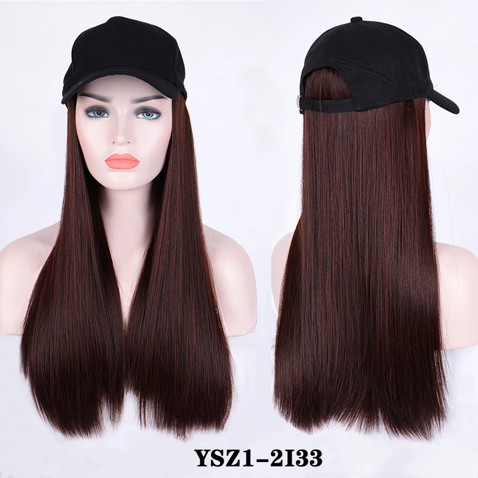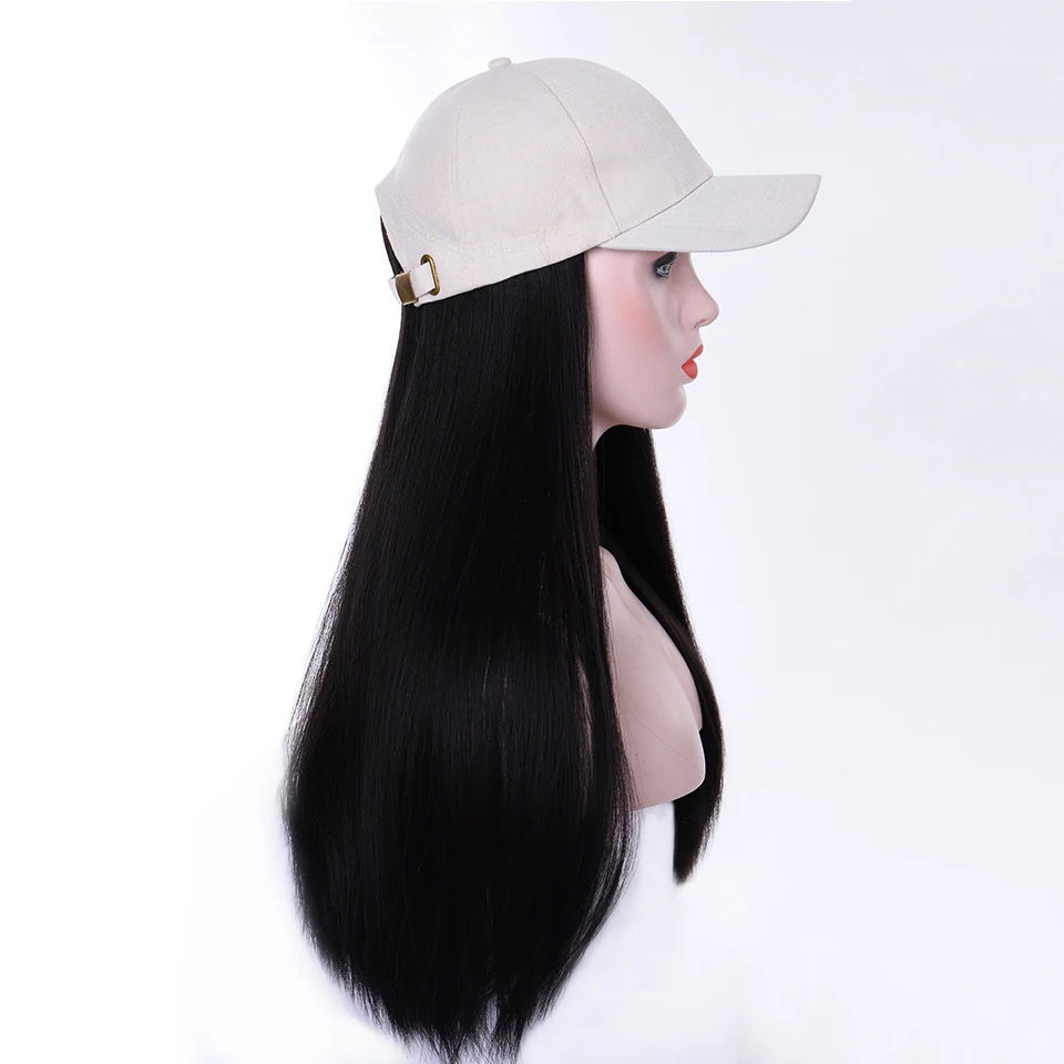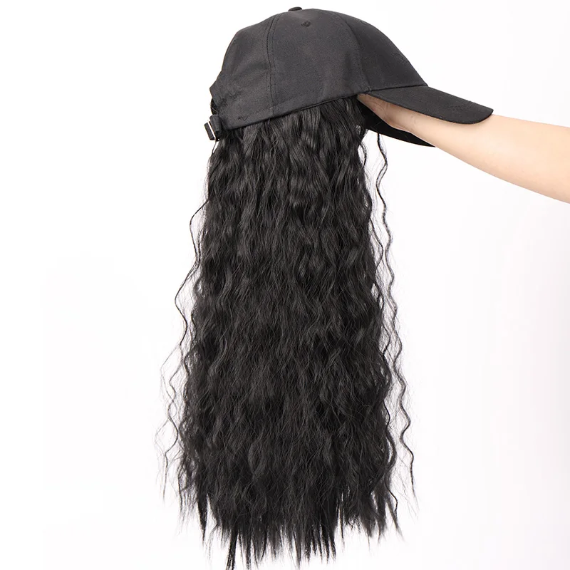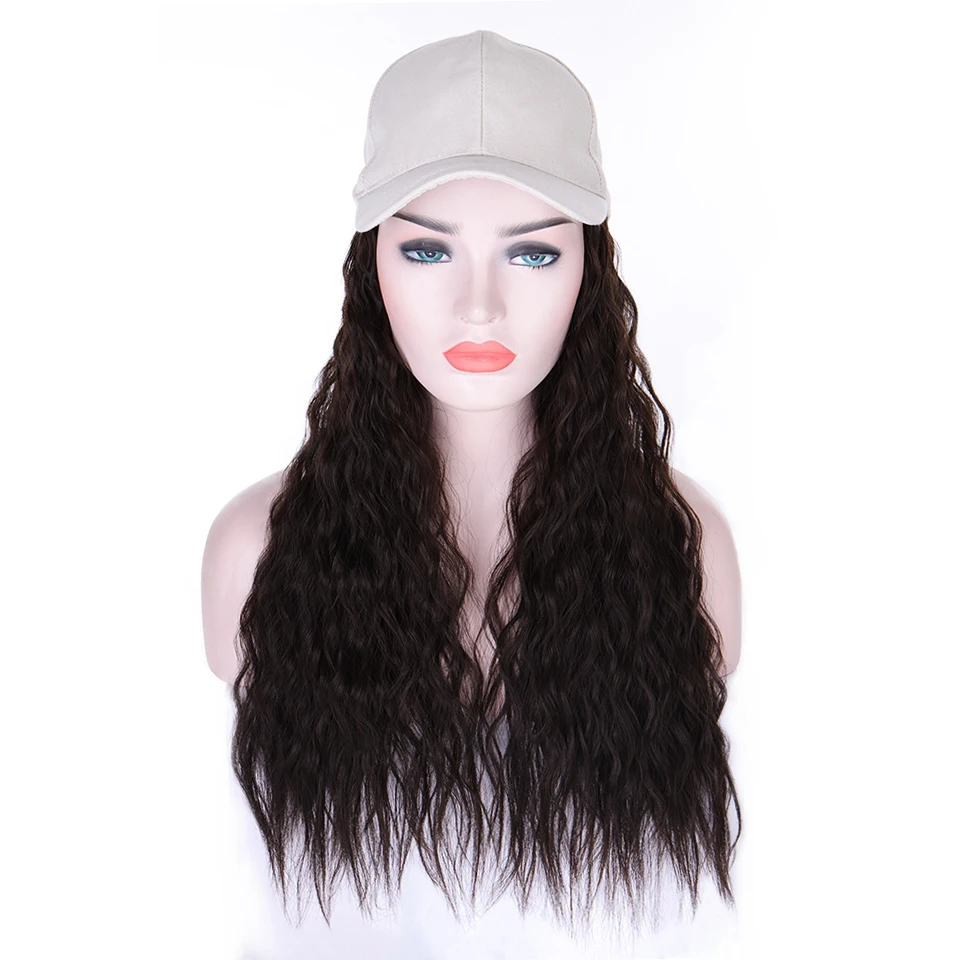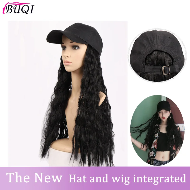 22-дюймовый длинный волнистый парик из синтетических волос со встроенной регулируемой шляпой черного цвета для женщин BUQI