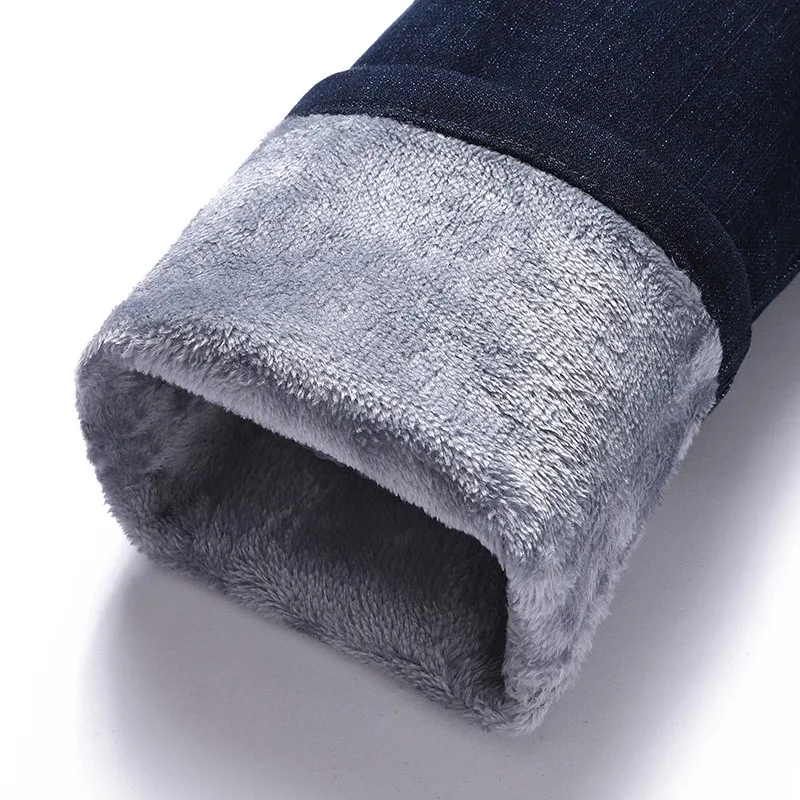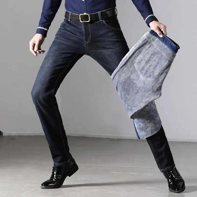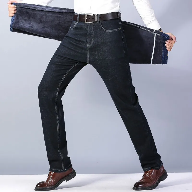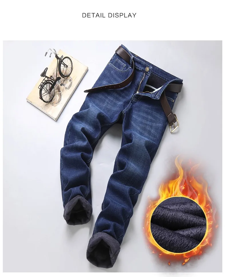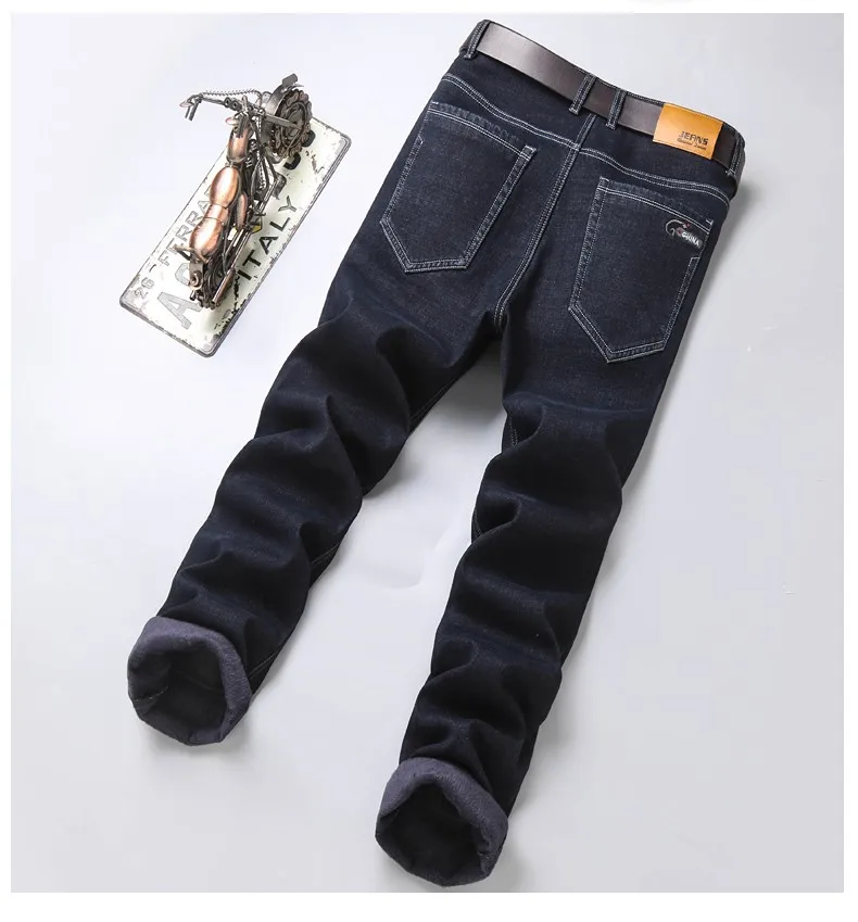 Джинсы мужские, черные, зимние, теплые, тянущиеся, плотные, 2021