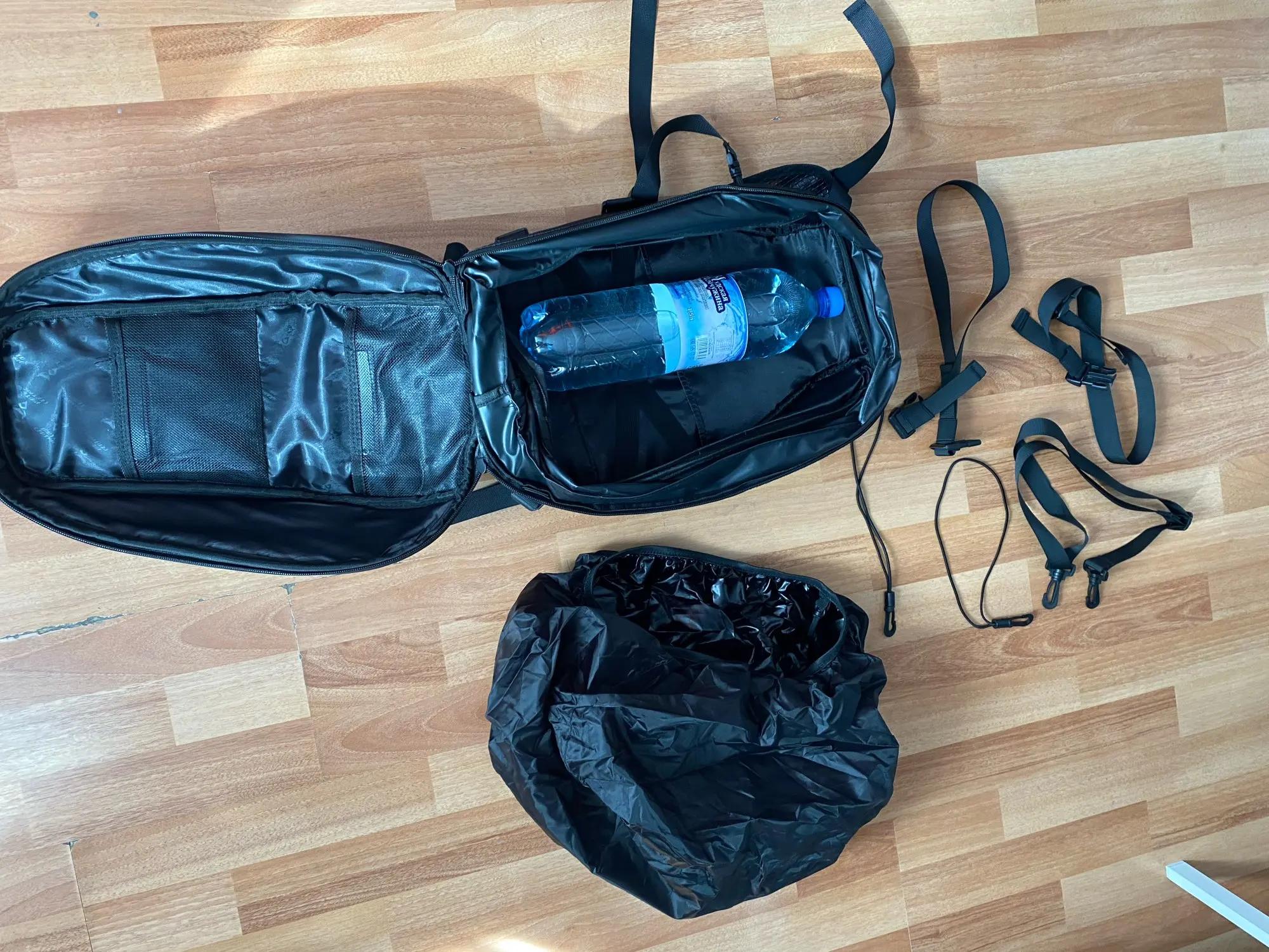 сумка великолепная: пошита хорошо, ровно, материалы приятные, разные крепления, лямки, стропы, карманы, ручка для переноски. вместительная, мгновенно трансформируется за счёт утягивания трёх ремней, есть дождевик. купил для хранения экипа и использования для багажа в поездках по городу, доволен, отличный товар!