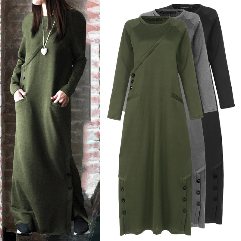 Женское зимнее платье Celmia, Осень-зима 2022, флисовая толстовка, длинное платье, повседневные пуловеры, праздничные платья на пуговицах с длинным рукавом