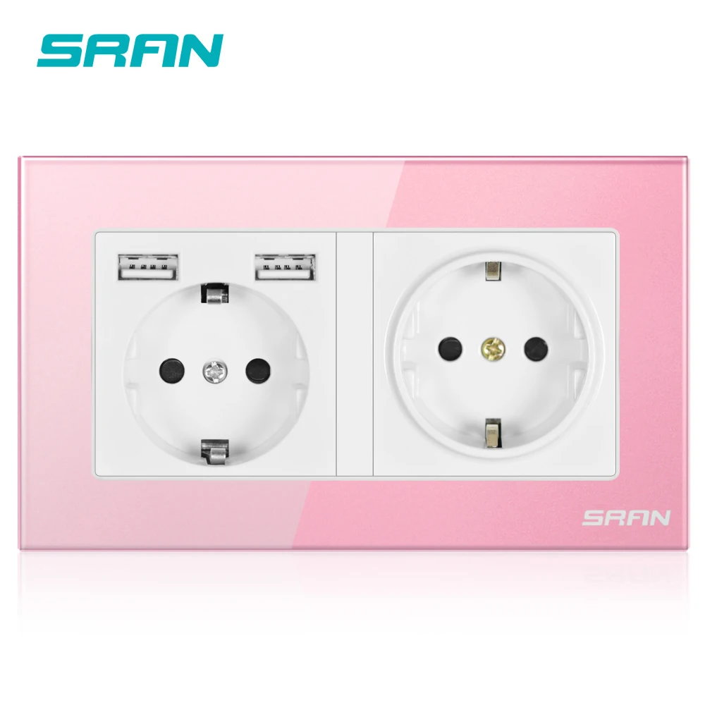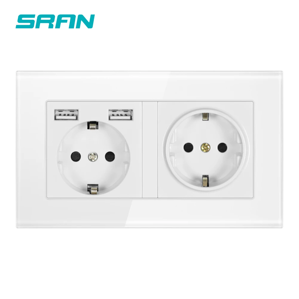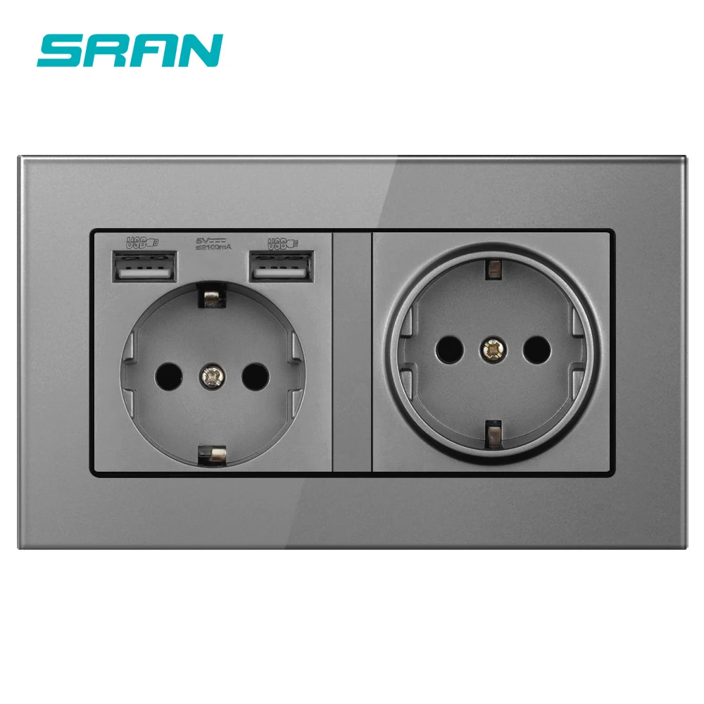 Настенная розетка SRAN 16 А, стандартная Европейская розетка, заземленная электрическая розетка с usb-выходом, 146*86, стеклянная, для семейного отеля