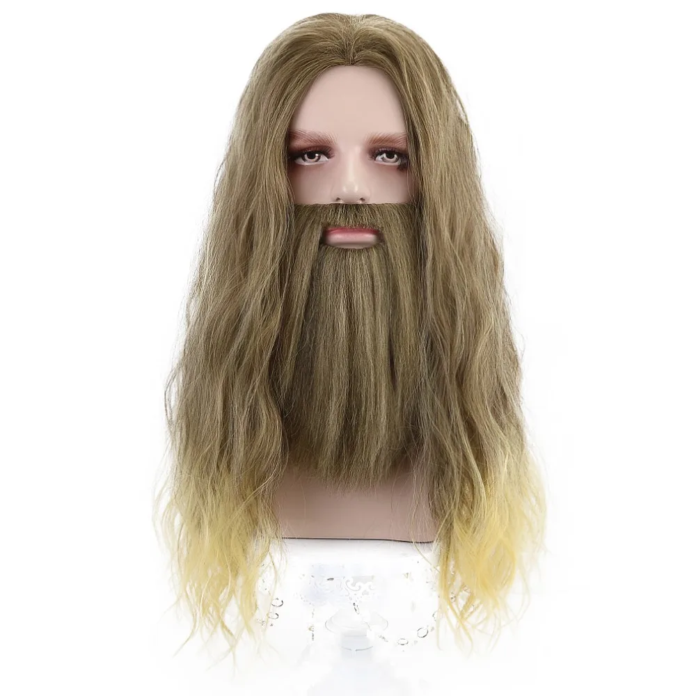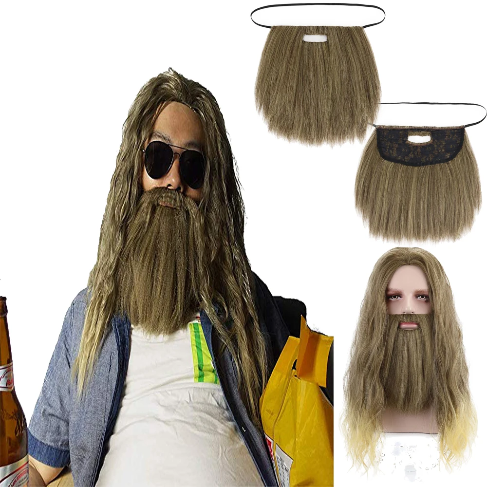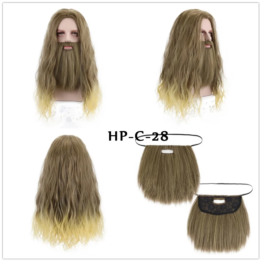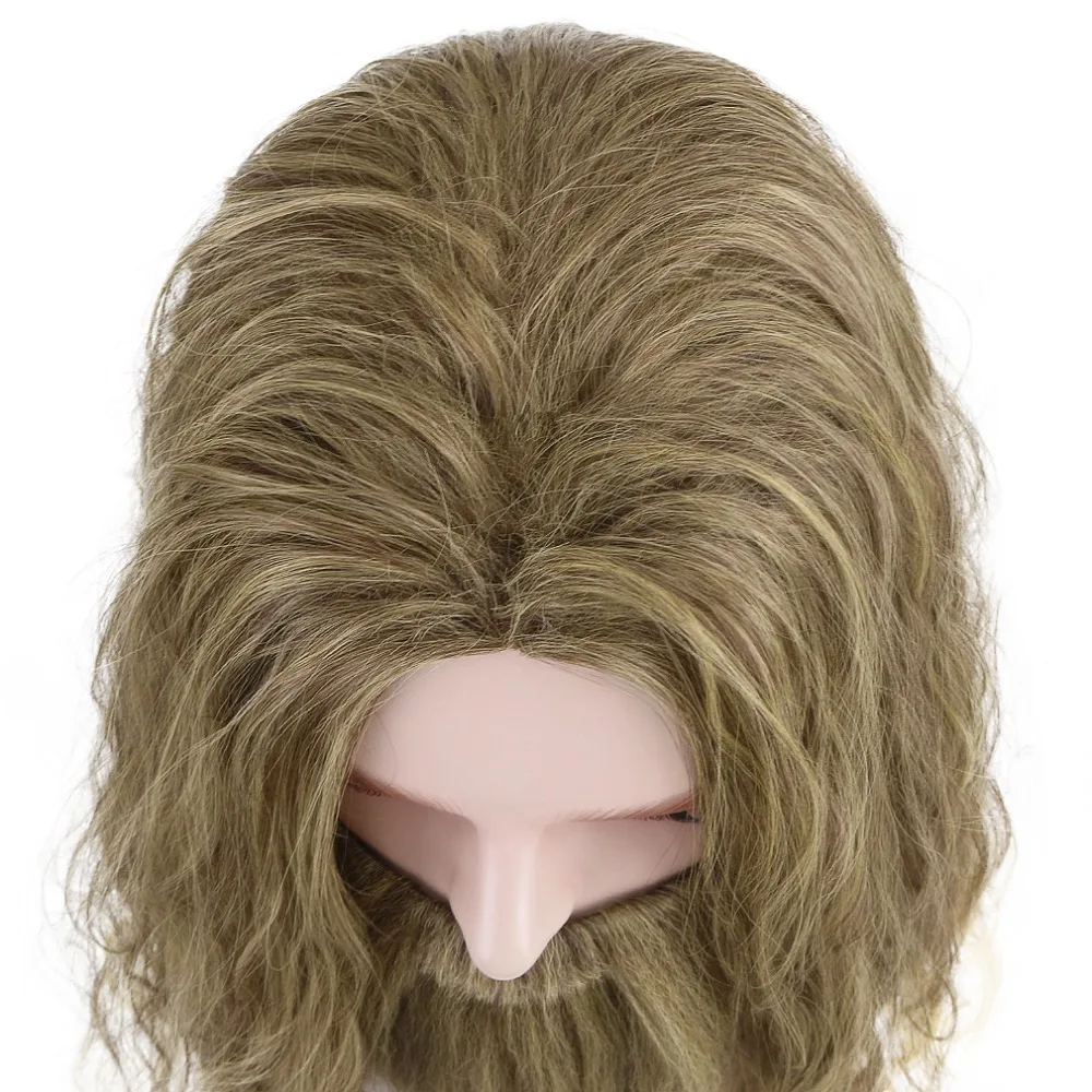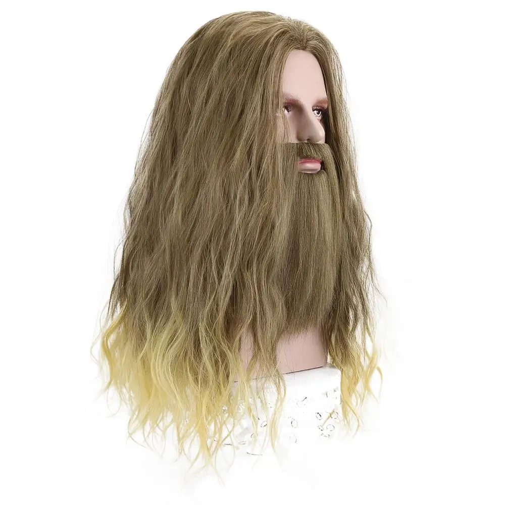 Синтетический парик Free Beauty для косплея из комиксного фильма борода, коричневые длинные волнистые волосы для мужчин, костюм для вечеринки, Термостойкое волокно для Хэллоуина