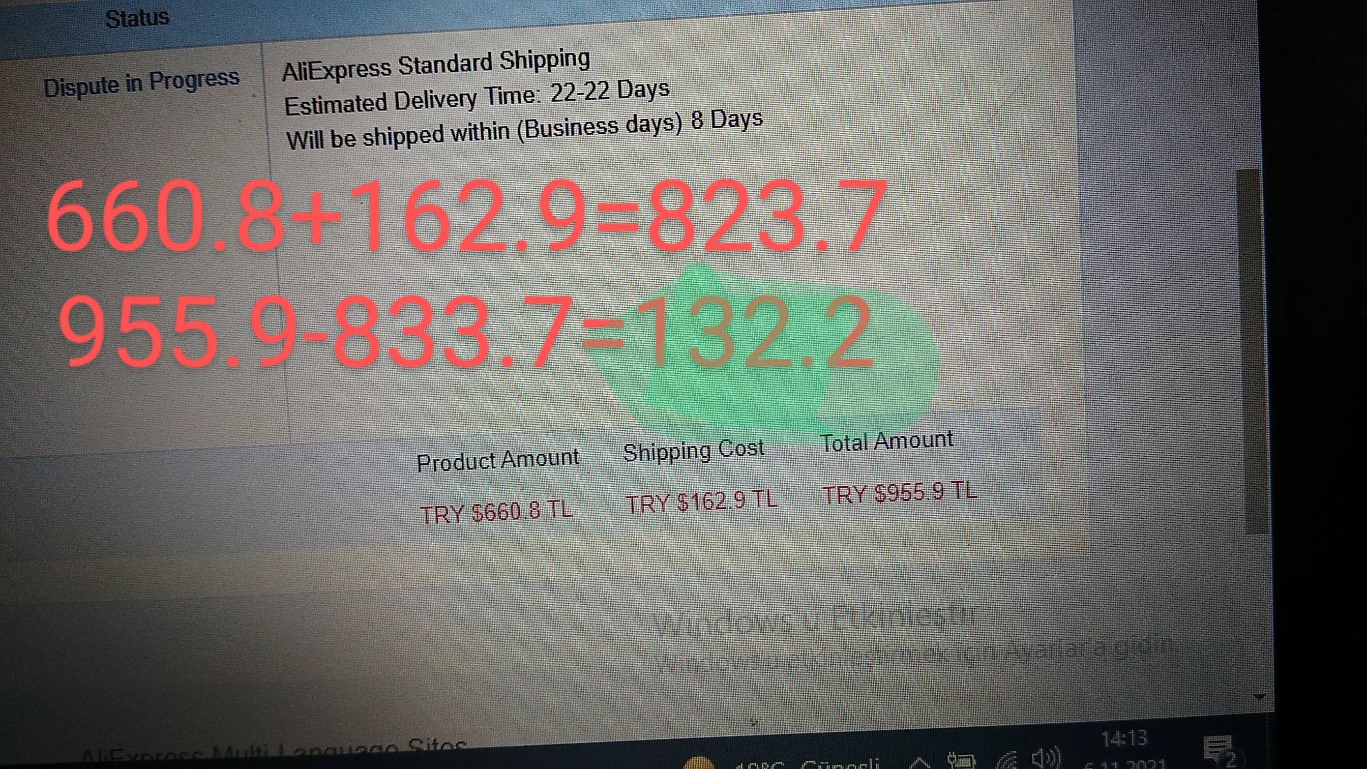 Я заплатил налог при покупке товара. Это означает, что налог не оплачивается снова в Турции. Налог снова пришел в Турцию. Открытый спор. Aliexpress считает меня нечестным, закрыл спор. Так почему следующее на английском языке? Он прибыл в течение 60 дней.