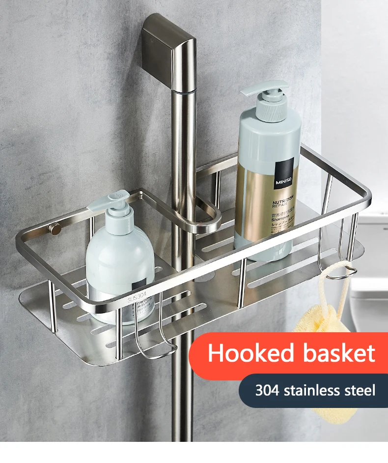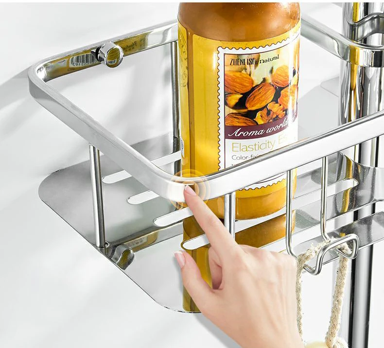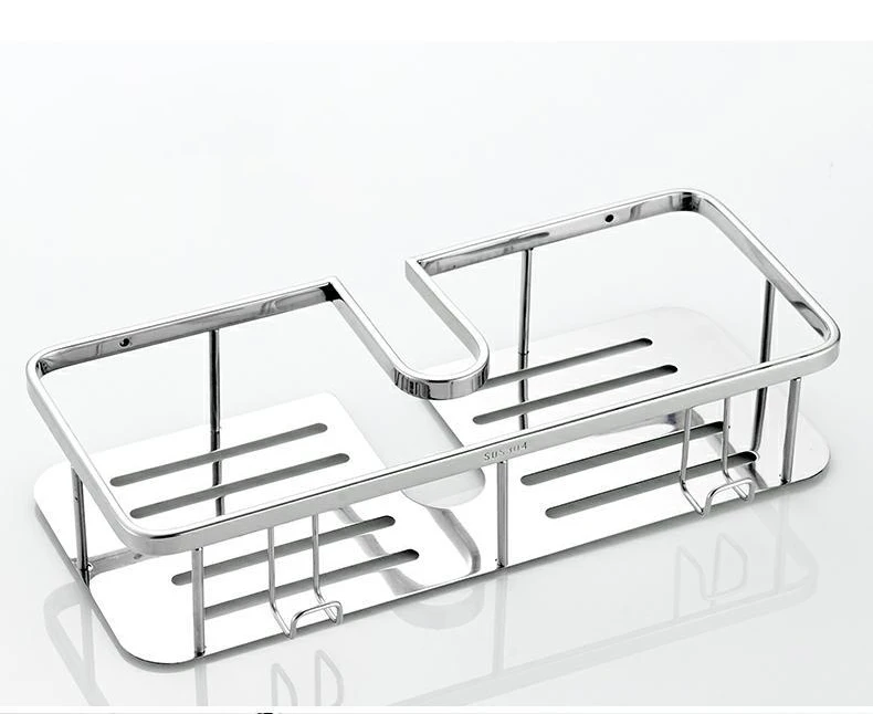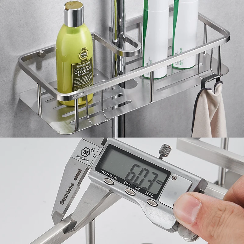 Полка для душа в ванную комнату, держатель для шампуня из нержавеющей стали 304, полки с отделкой из матового никеля и крючками для ванны мор115