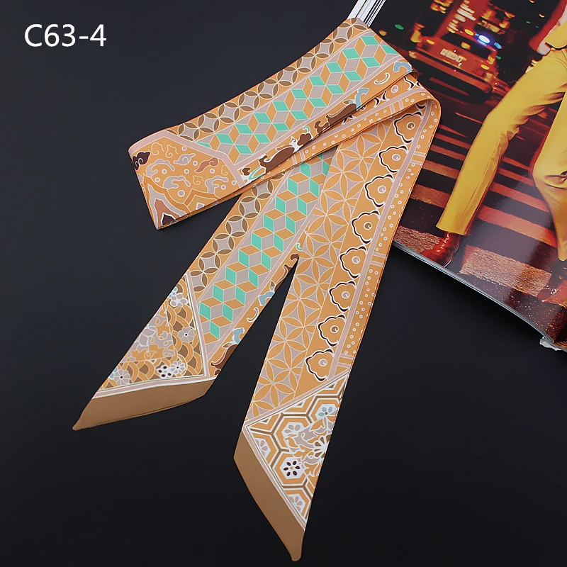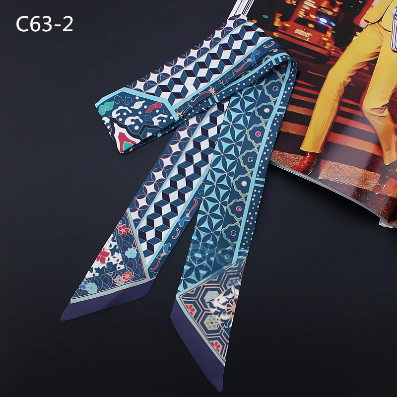 Новинка 2019, шелковый шарф с геометрическим цветочным принтом, женский роскошный брендовый модный головной платок с лентами, маленькие длинные узкие шарфы