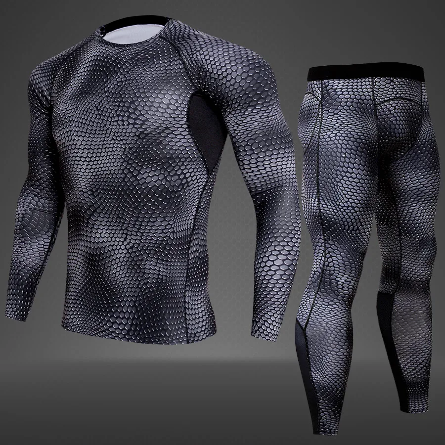 Мужская футболка со второй кожей, штаны MMA с длинным рукавом, Мужская компрессионная рубашка, одежда для фитнеса, бодибилдинг, MMA Рашгард, спортивный комплект