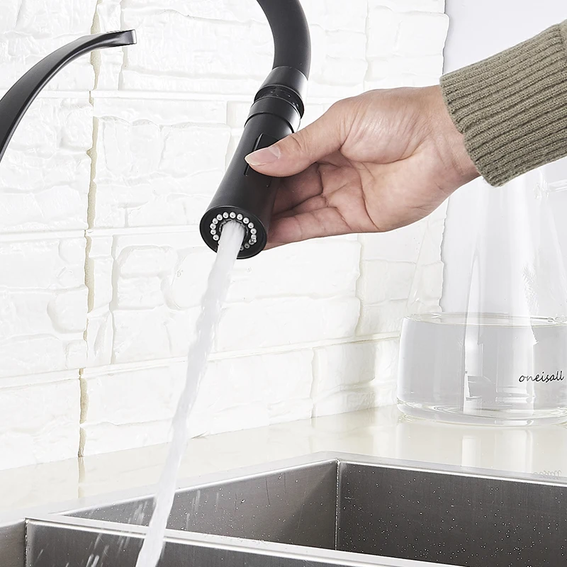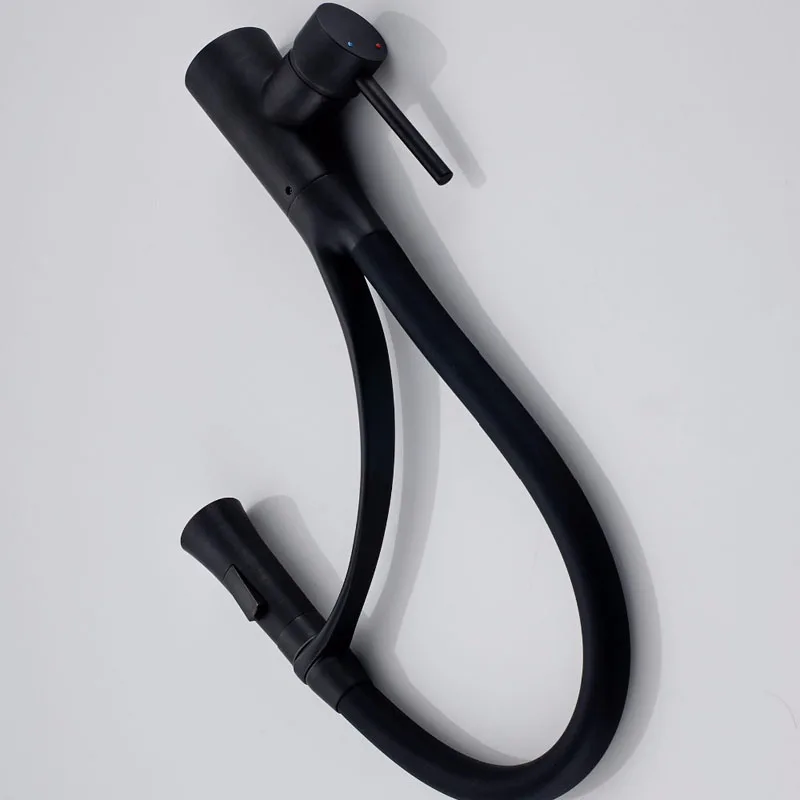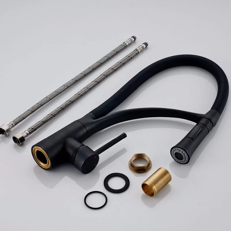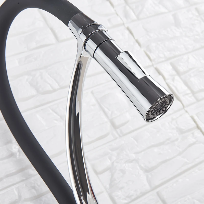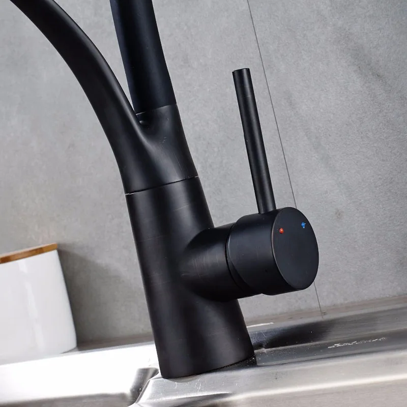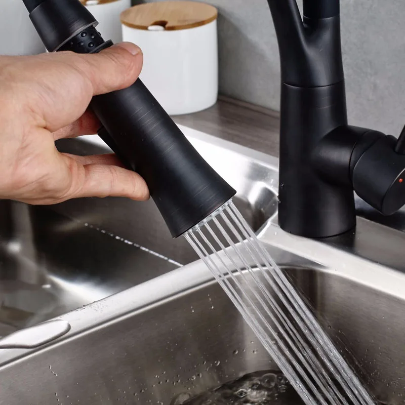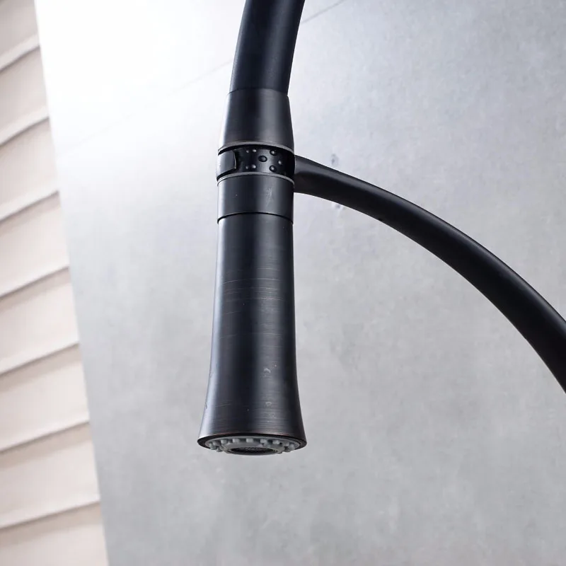 Черный Кухня раковина кран с одной ручкой Кухня стиральная кран смеситель горячей и холодной воды краны вытащить опрыскиватель смесители бортике