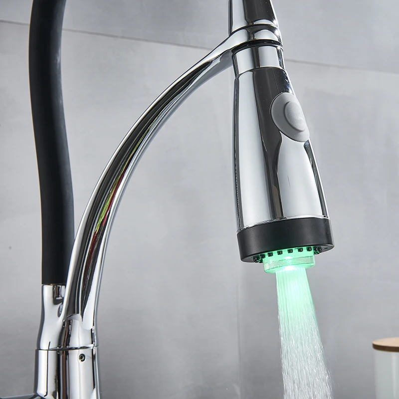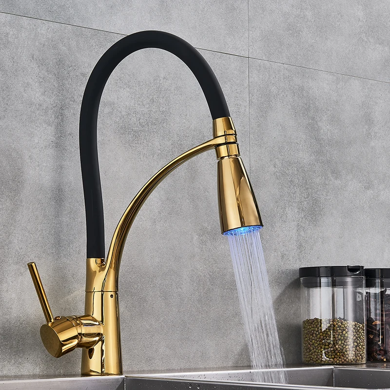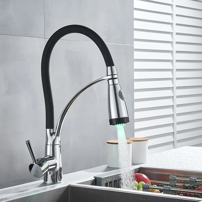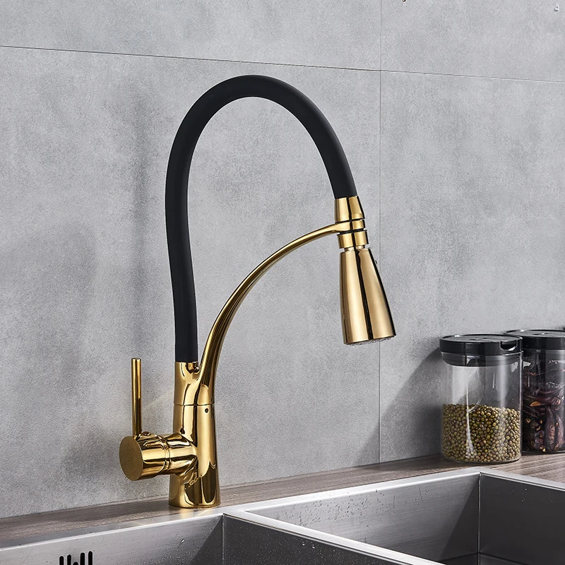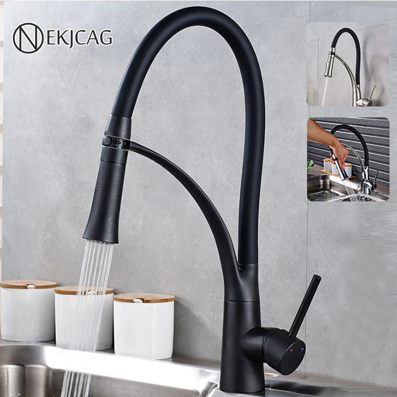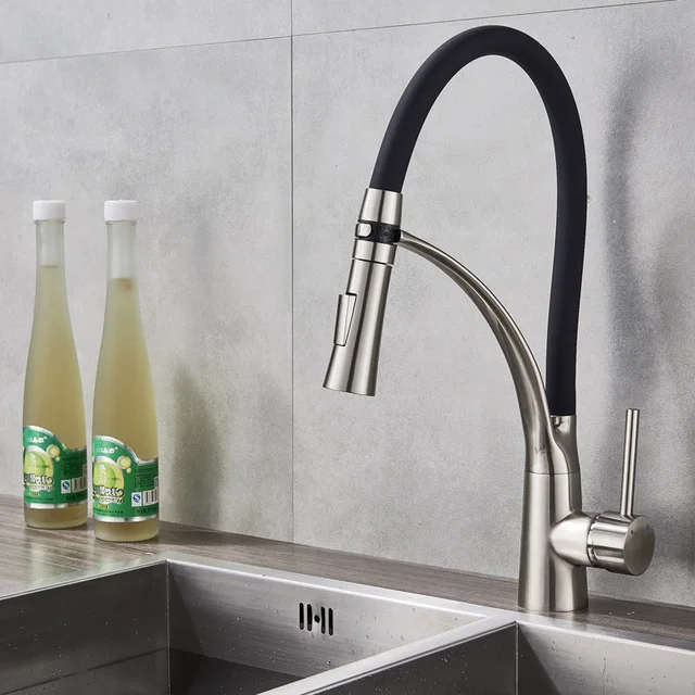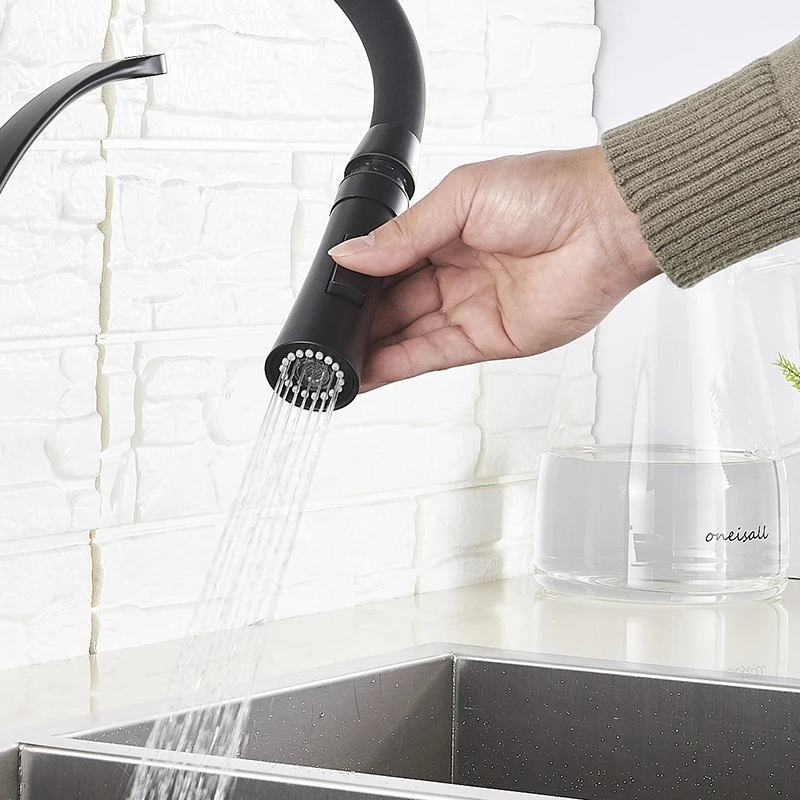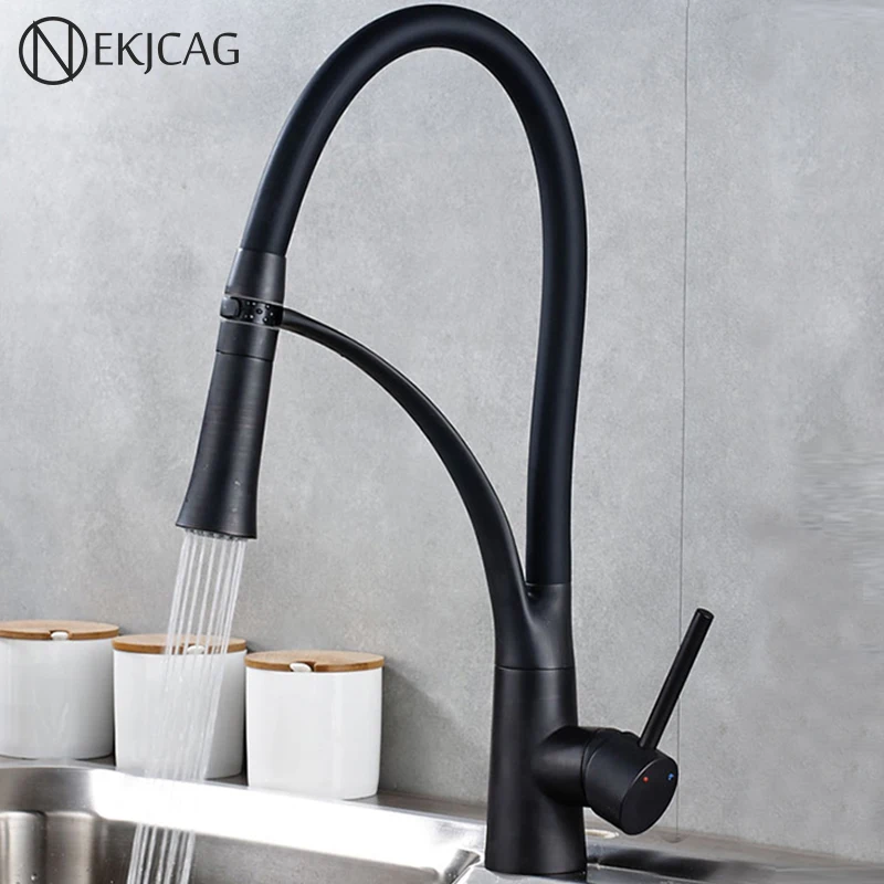 Черный Кухня раковина кран с одной ручкой Кухня стиральная кран смеситель горячей и холодной воды краны вытащить опрыскиватель смесители бортике