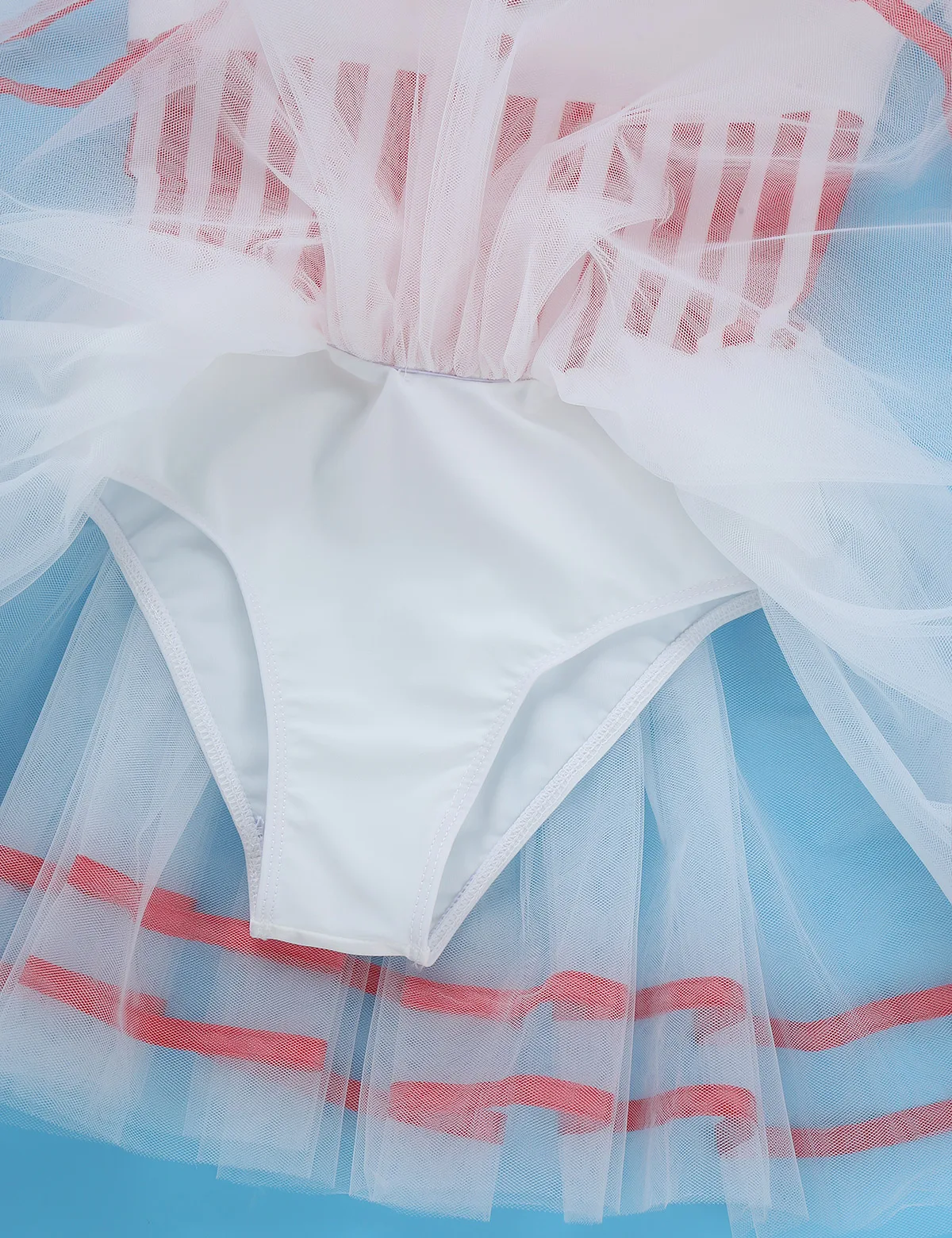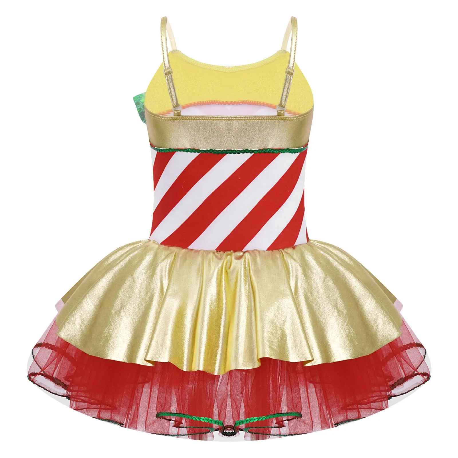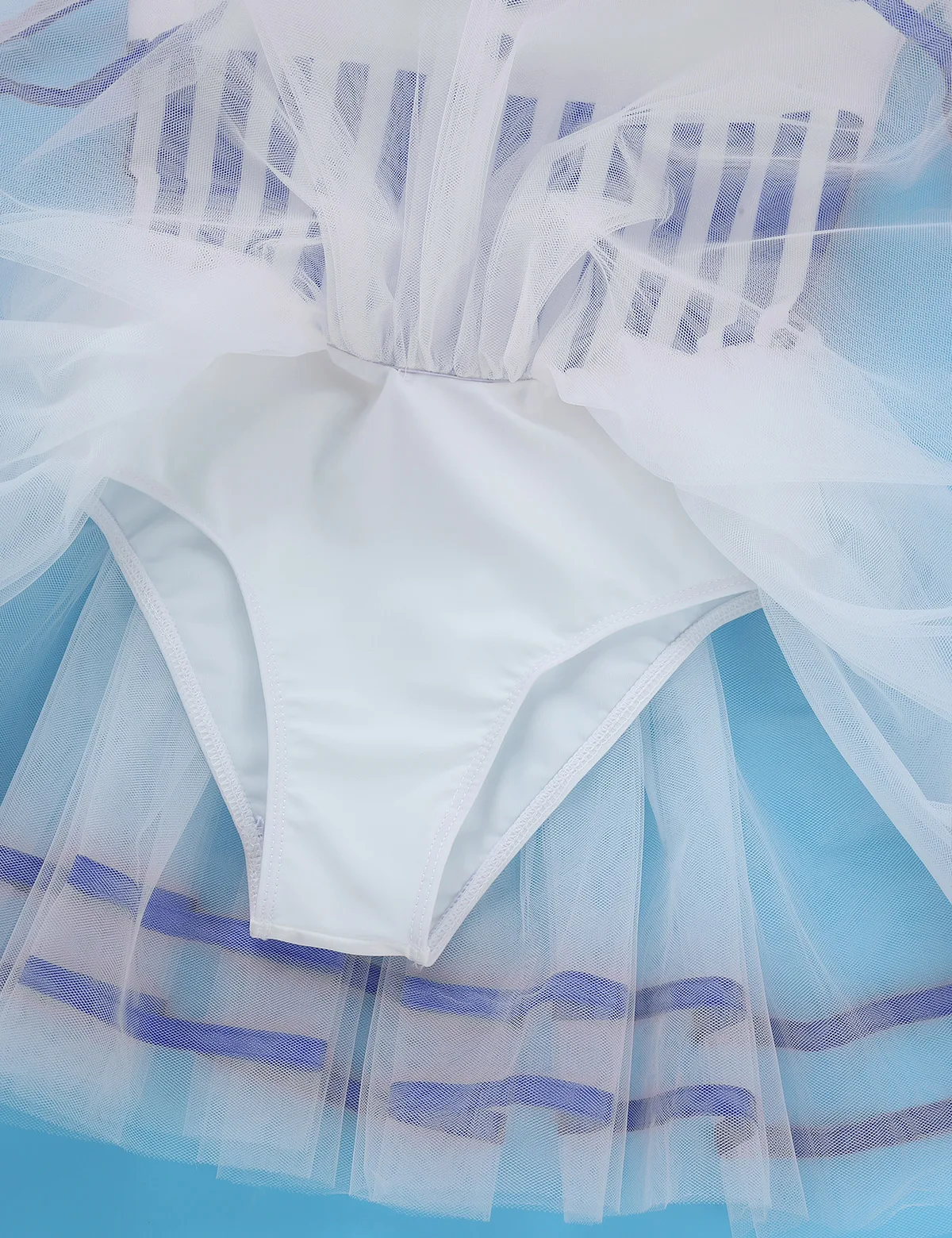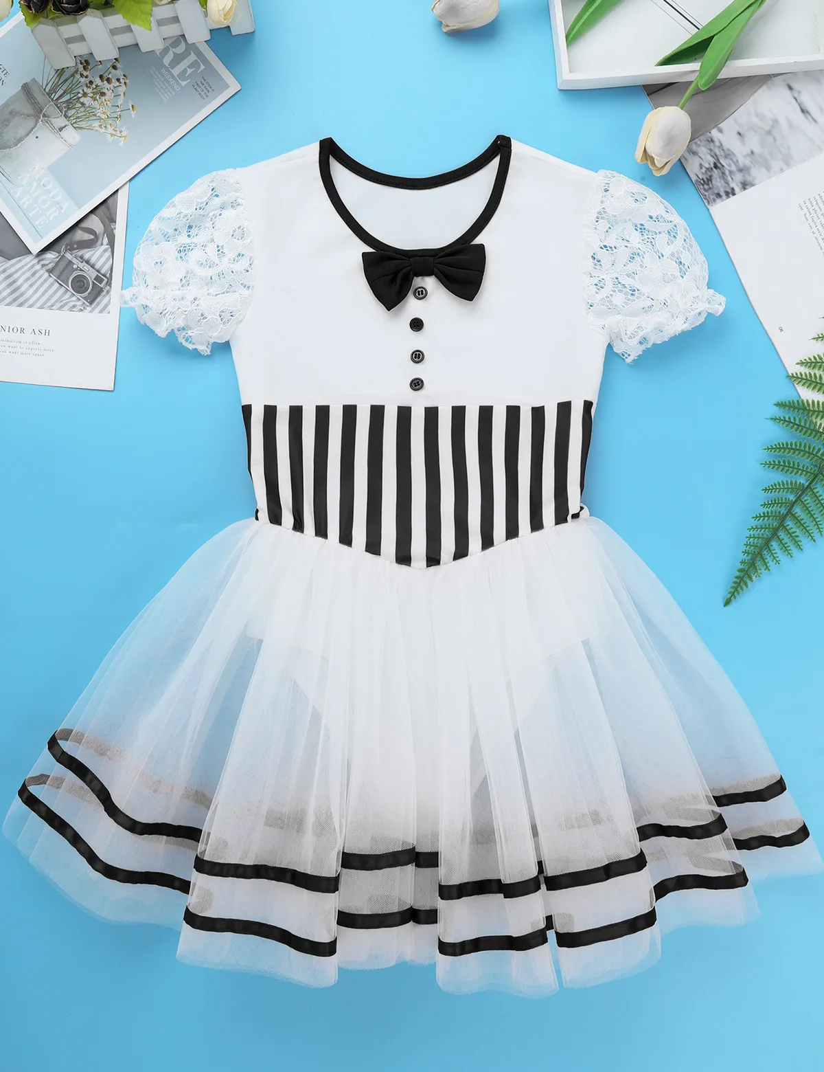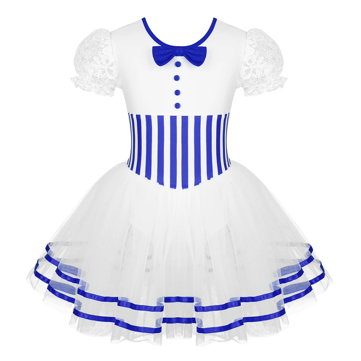 Трико TiaoBug детское, с Короткими Кружевными Рукавами, Сетчатое, в полоску, для балета, фигурного катания, гимнастики, выступления, танцев