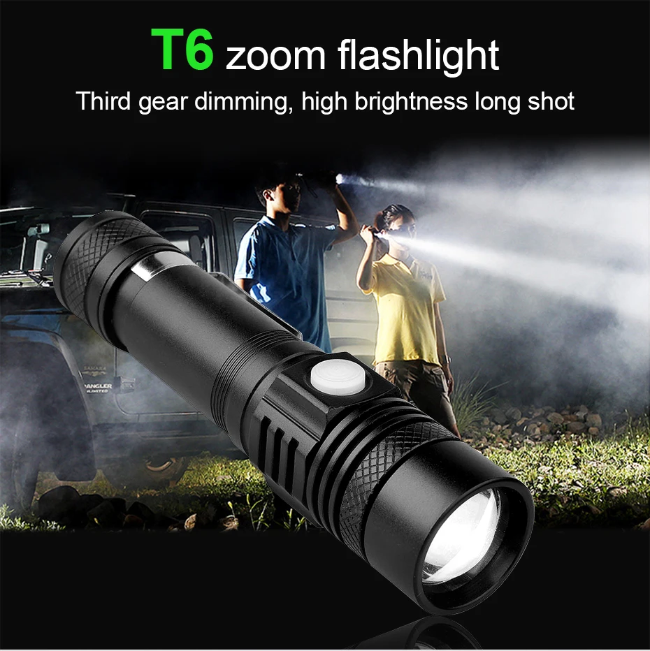 Мощный светодиодный фонарик, USB, перезаряжаемый аккумулятор 18650, зум-фонарик, T6 светодиодный ручной фонарик, фонарик для кемпинга, пеших походов, работы