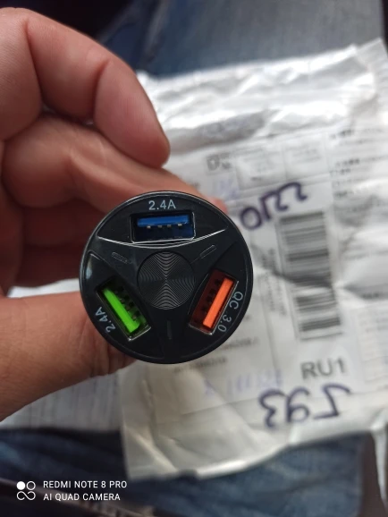 Доставочка долговатая, но это не вина продавца, он отправил быстро! Упаковано слабенько, тонкая пупырка и пакет, каждый зарядник тоже был в своем пакетике, но пришло все целое! Быстрая зарядка работает! Остольные порты тоже работают! За полтора часа зарядки двух телефонов, зарядник нагрелся, но не критично, запахов ни каких не испускает! В общем покупкой доволен, продавца рекомендую!