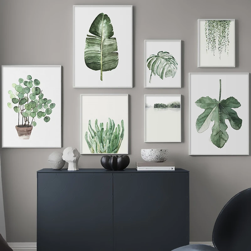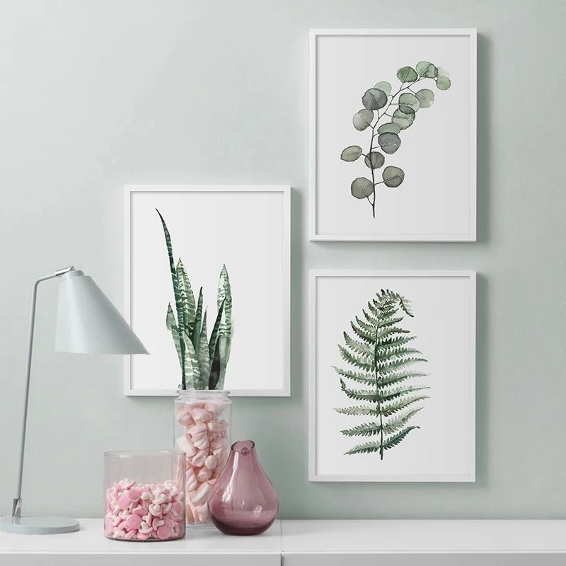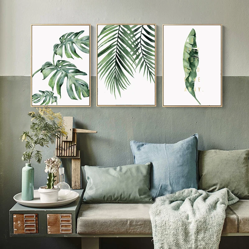 Акварельные листья настенная живопись холст зеленый стиль растение скандинавские плакаты и принты декоративная картина Современное украшение для дома