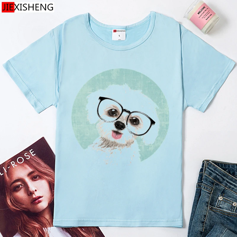 Женская футболка с коротким рукавом Harajuku, летняя модная повседневная футболка с принтом милой собаки, футболка большого размера с мультяшным рисунком