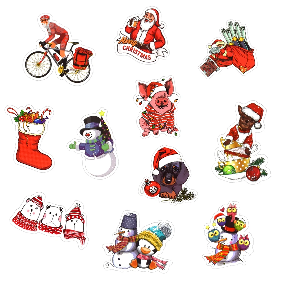 50 шт., рождественские наклейки, Мультяшные животные, наклейки, подарки для детей, сделай сам, скрапбукинг, ноутбук, планшет, чемодан, бутылка для воды