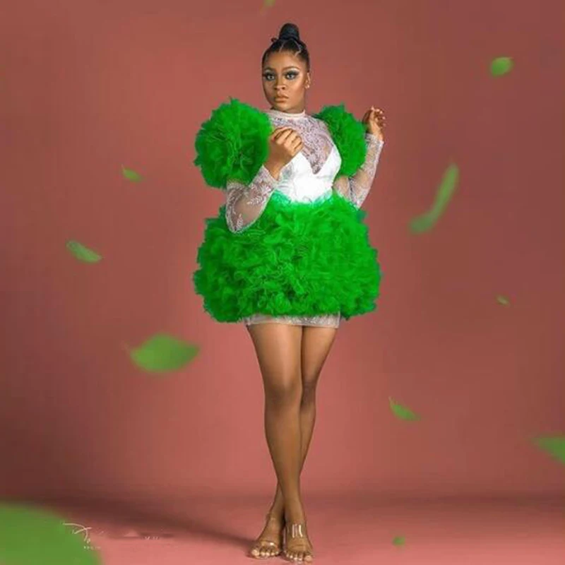 Зеленое короткое вечер встречи выпускников длинное вечернее платье платья для женщин в винтажном стиле, кружевное платье с длинными рукавами мини-платье на выпускной, пышное платье из органзы Vestidos de Gala 2020 пользовательские моды