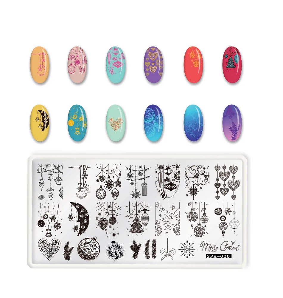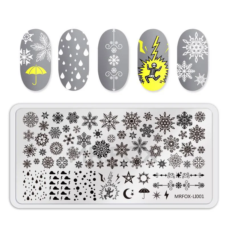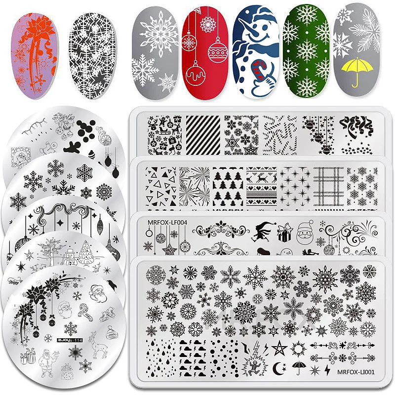 Трафарет для маникюра, с изображением снега, рождественской тематики, пластины для штамповки ногтей