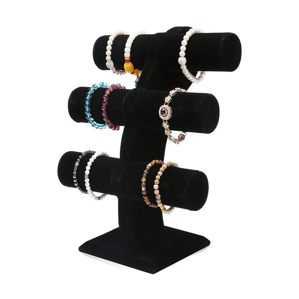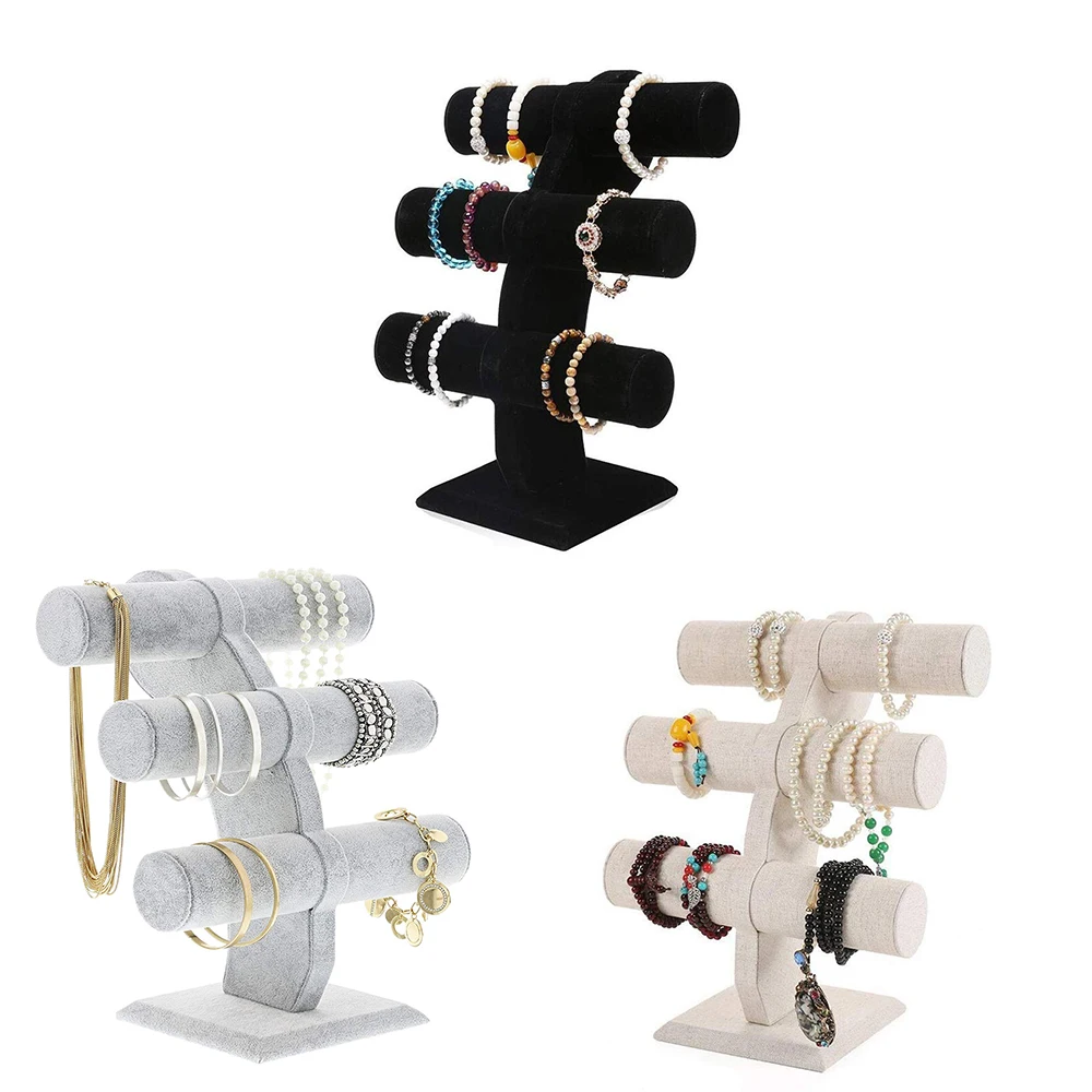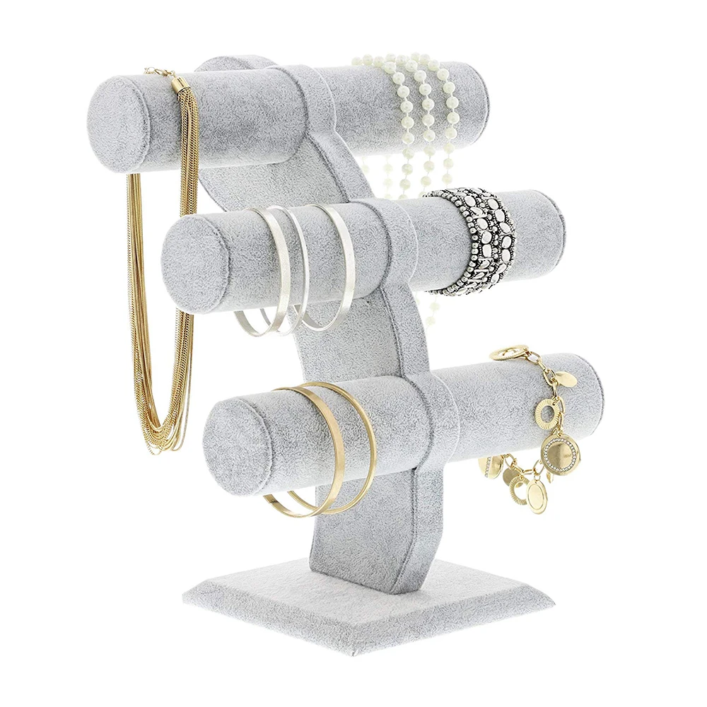 Вельветовая Т-образная стойка, держатель для браслета, 3-уровневый органайзер для ювелирных магазинов, часы, ожерелья, декоративные цепочки-серый