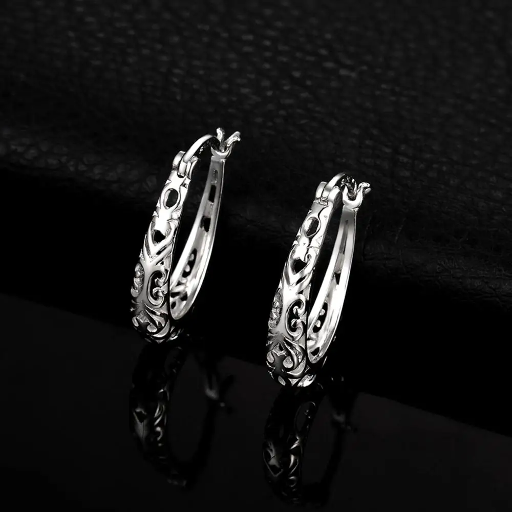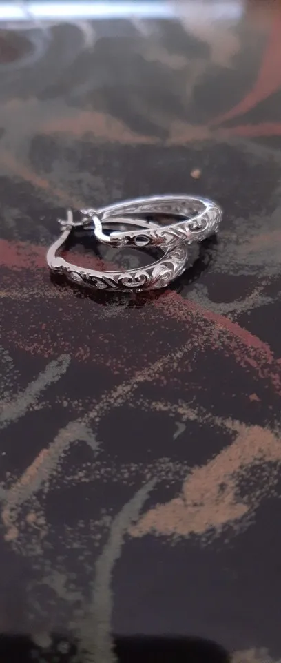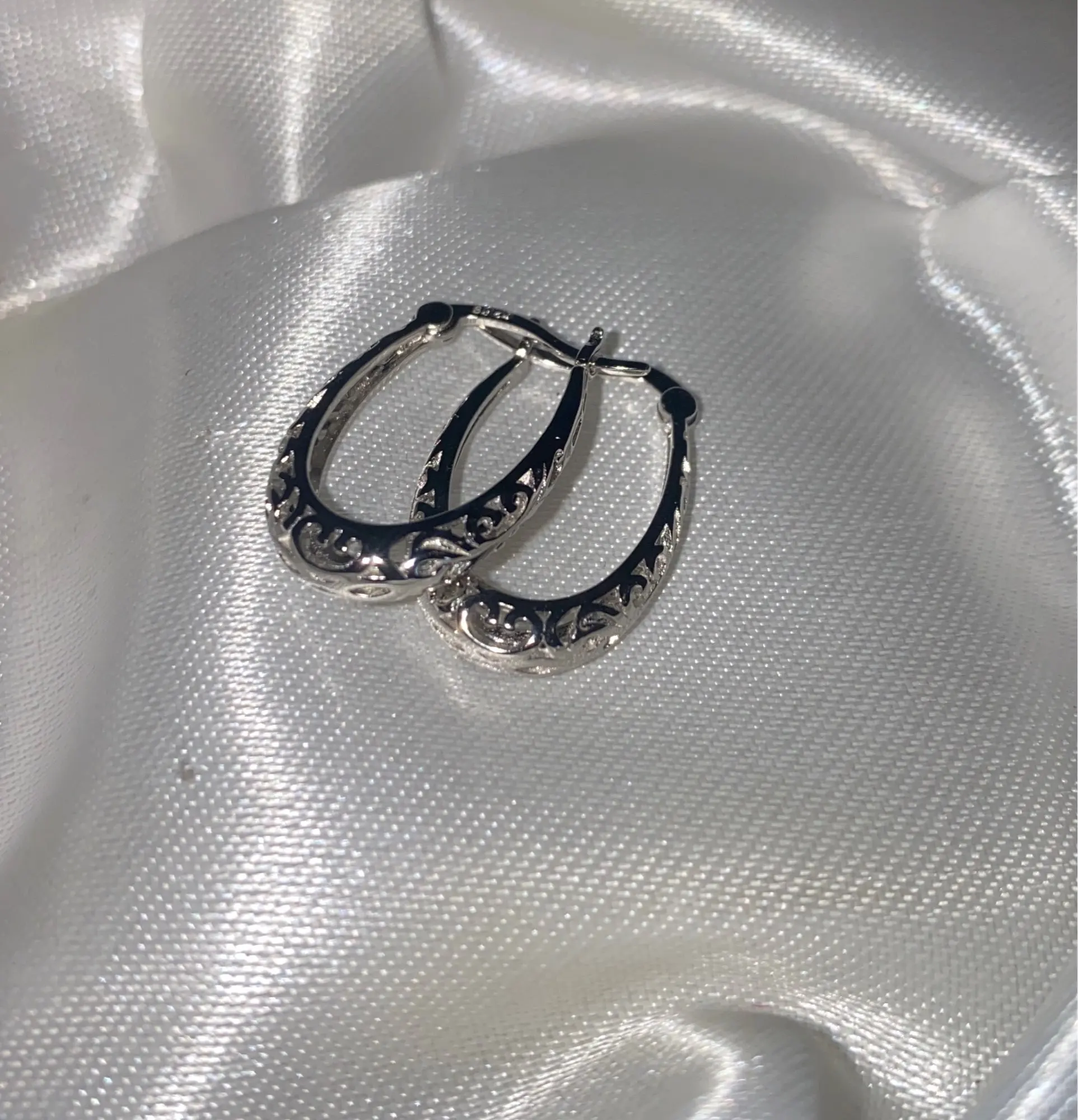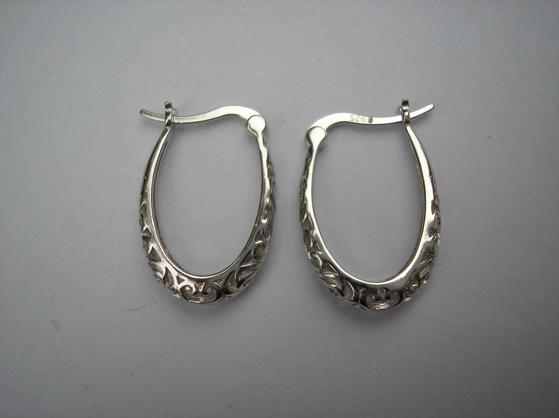 These graceful hoop earrings crafted in sterling silver with beautiful floral filigree design. Elevate your look with the decorative appeal of these vintage filigree earrings.