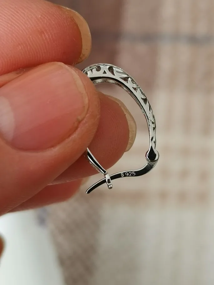 Красивые, небольшие серьги из серебра 925 пробы с родиевым покрытием. Сделаны качественно. К застежке надо привыкнуть. В подарок были серьги - цепочки, также из серебра. Очень понравились. Доставка в Беларусь 2 недели. Спасибо большое продавцу!