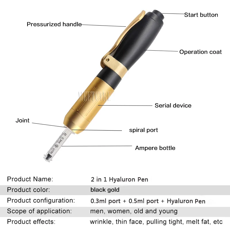 2-в-1 мезоинъекционный пистолет, гиалуроновая ручка, 0,3 мл и 0,5 мл, золотая ручка с гиалуроновой кислотой, наполнитель для губ, инжектор, неинвазивный небулайзер, уход за кожей