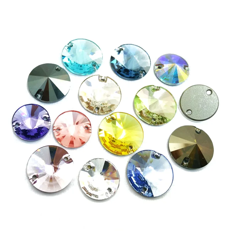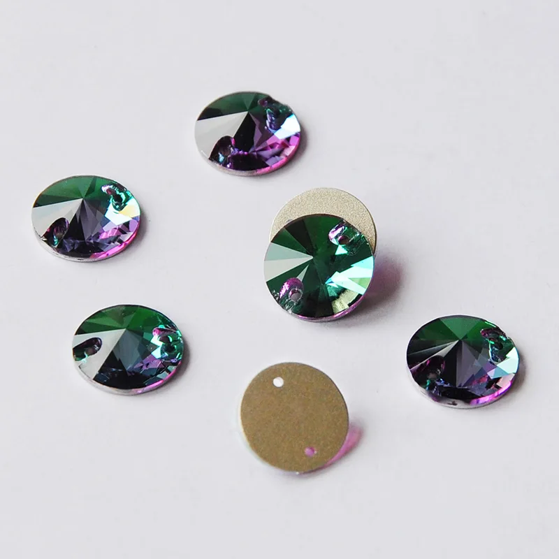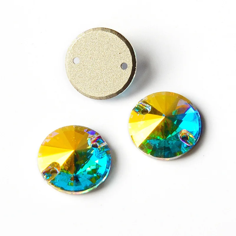 Круглые Rivoli стеклянные стразы кристалл AB синяя фуксия Роза пришивные стразы блестящие стразы для одежды
