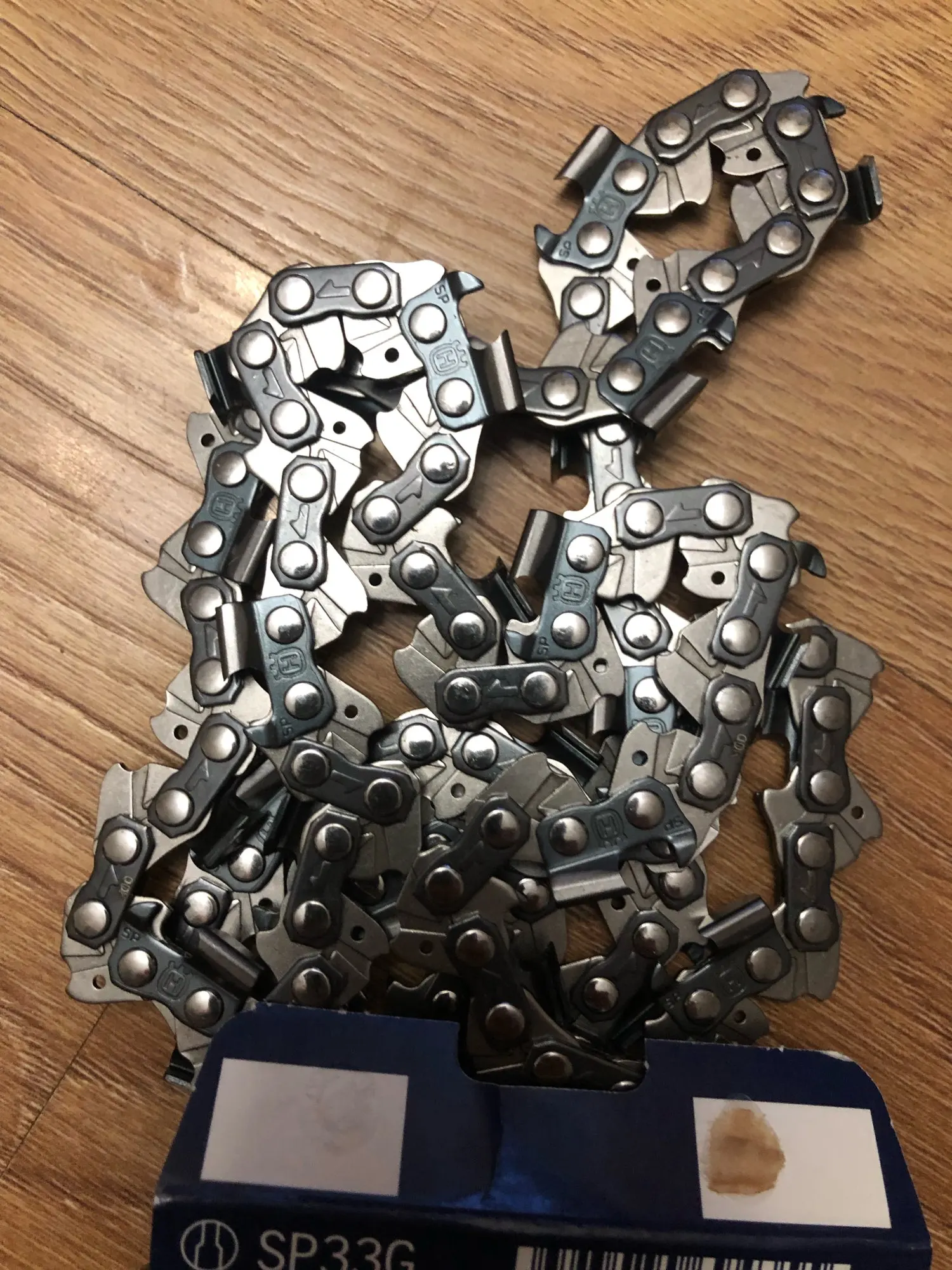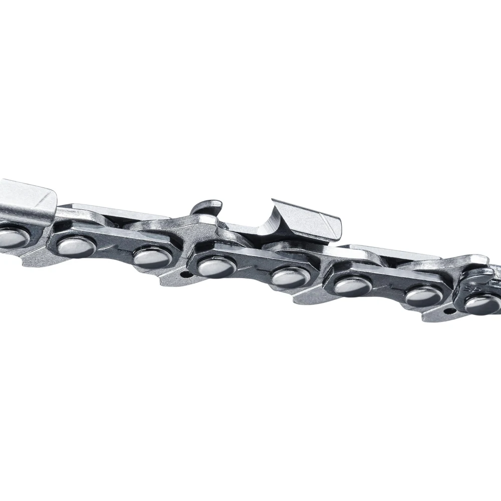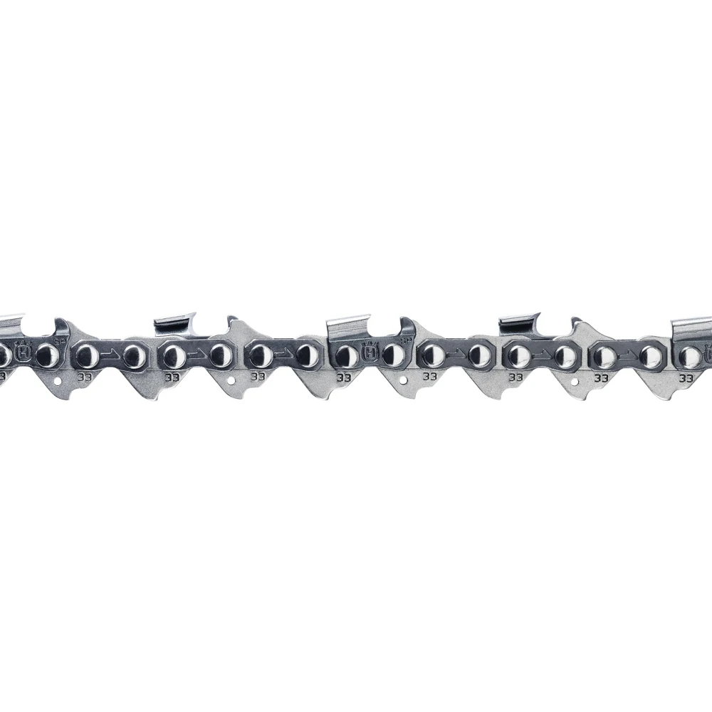 Цепь Husqvarna SP 33G состоит из пяти элементов (режущий зуб, боковое соединительное звено, центральное звено с хвостовиком, центральное звено с хвостовиком и верхним амортизатором и заклепка). Отработанная технология тщательного соединения элементов обес