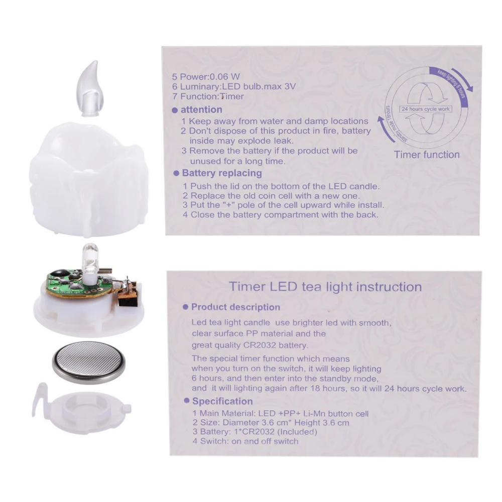 24 шт.лот, светодиодные свечи, Мерцающие светодиодные свечи с таймером, электронная лампа Bougie с аккумулятором для украшения праздников