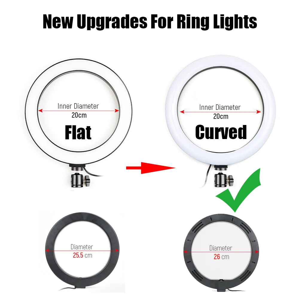 Дорогие клиенты и друзья, потому что многие клиенты сообщают, что плоские огни будут иметь тени пятна, поэтому мы решили обновить плоские кольцевые огни до выпуклых кольцевых огней. Выпуклые кольцевые огни имеют лучшие материалы и лучшую светопроницаемость. Если у вас есть какие-либо вопросы, пожалуйста, свяжитесь с нашей службой поддержки клиентов