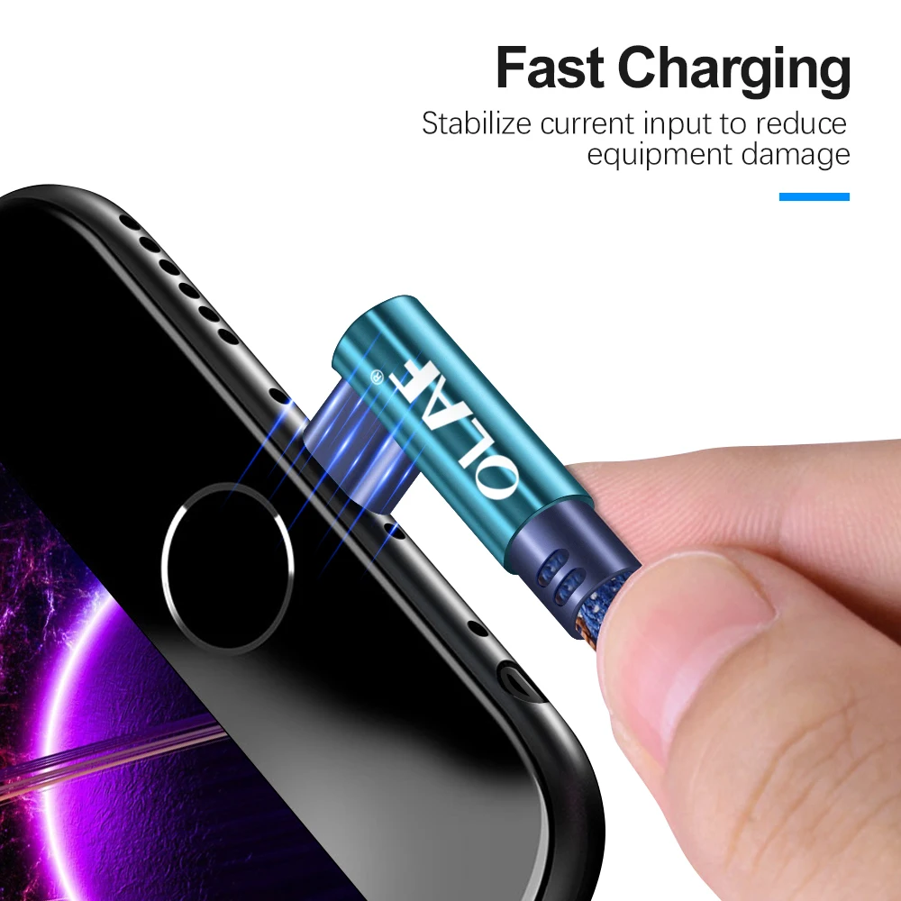 OLAF 90 градусов Micro USB кабель 2.4A шнур для быстрой зарядки и с...