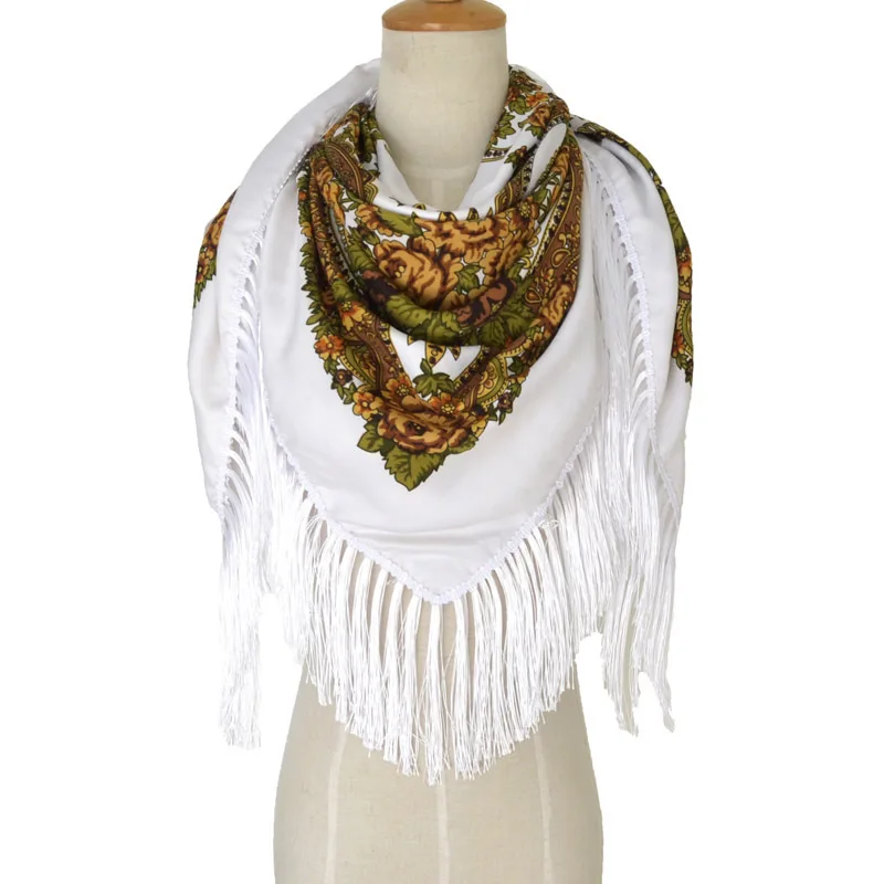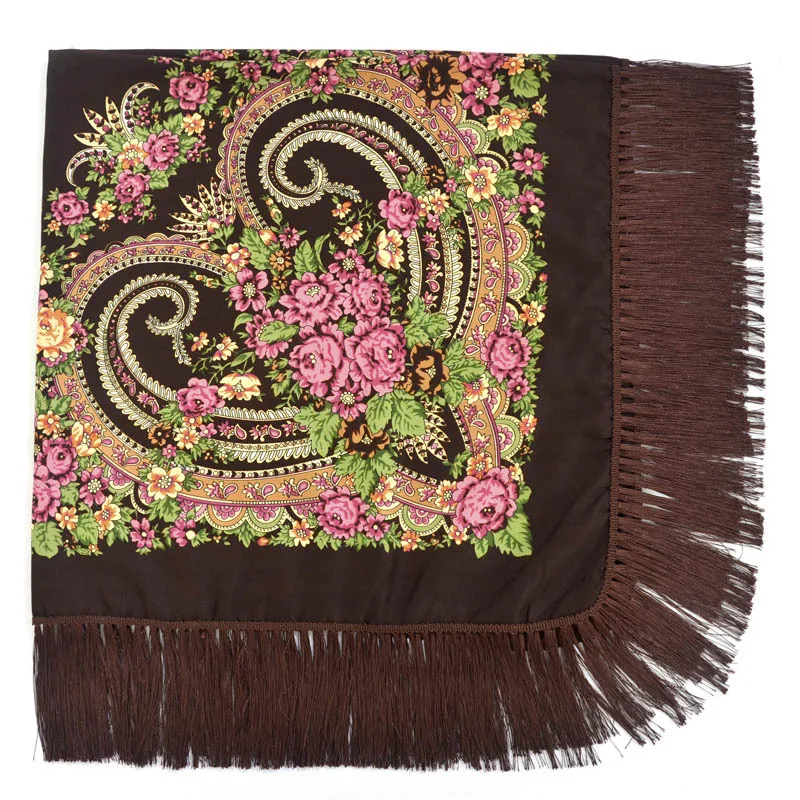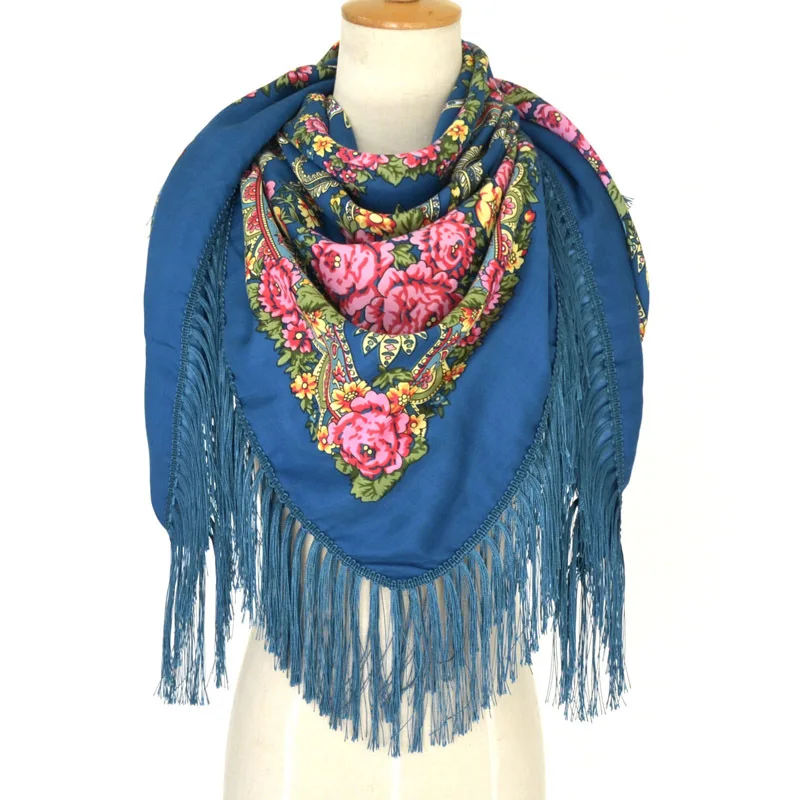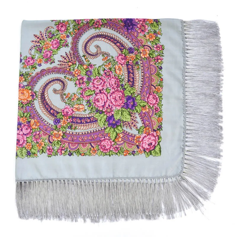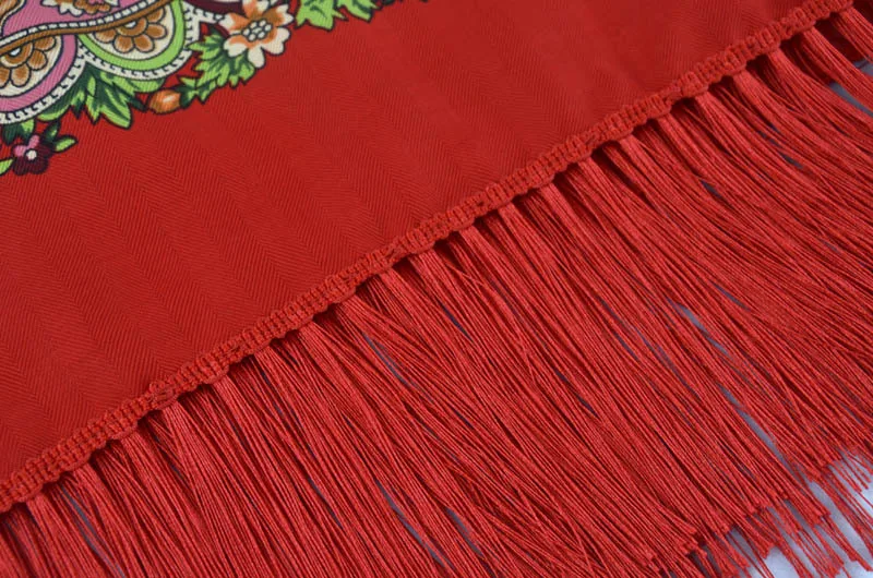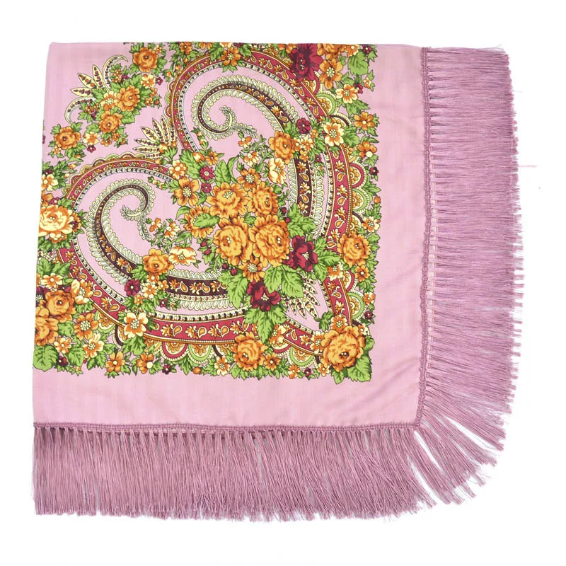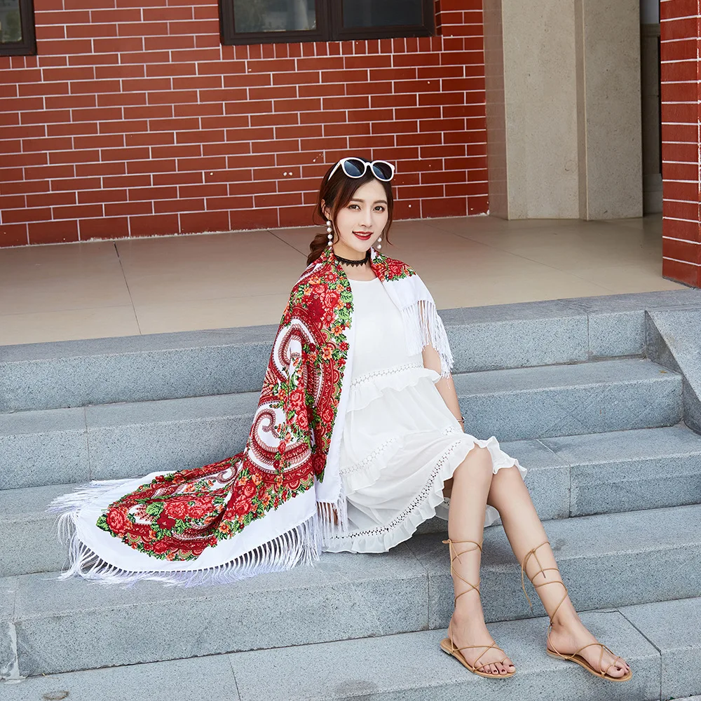 Квадратный шарф из хлопка, в русском ретро стиле, 135x135 см, с цветами и кисточками, Дамский зимний шарф, одеяло, шаль, Пашмина