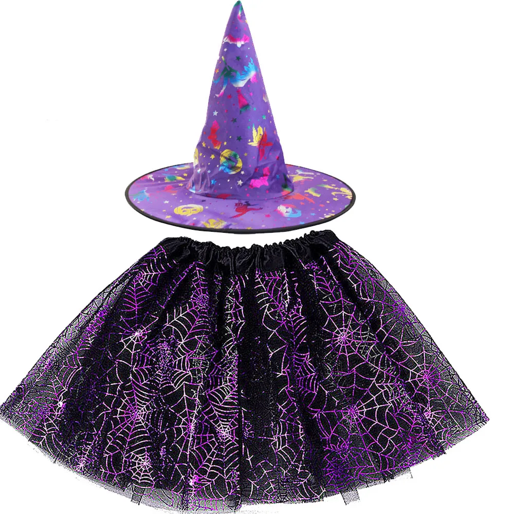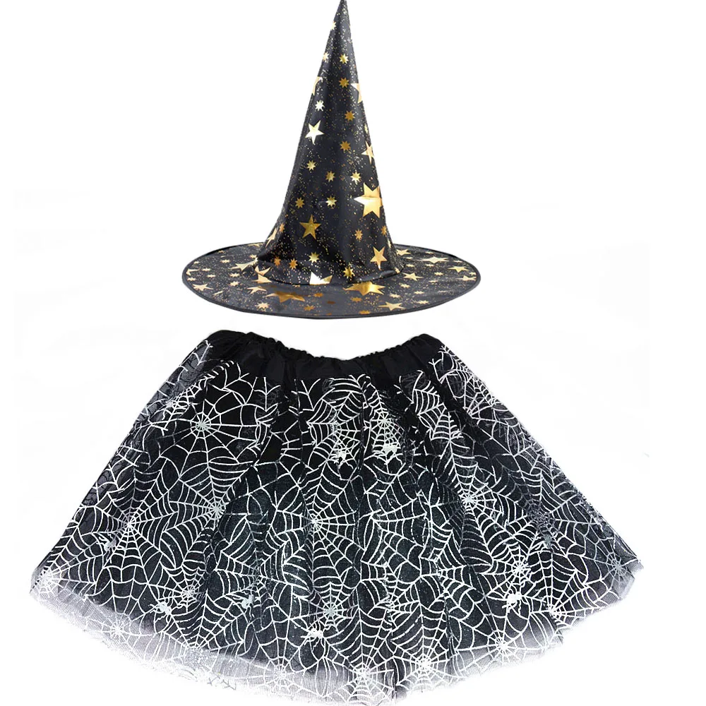 Костюм для Хэллоуина для девочек, пачка паутины, паутина, юбка паутины, шляпа ведьмы, волшебника, тюлевые наряды на карнавал, день рождения, Рождество