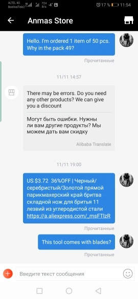 Заказ прилетел за полтора месяца (+ ещё неделю катался в машине доставки, т.к наши люди в Петропавловске обычно не торопятся забрать свою посылку с постамата). Вместо 50-ти коконов, в пакете оказалось 49...хоть и мелочь, а неприятно-особенно, когда доплачиваешь за доставку, чтобы посылка не колесила полгода от Латвии до Казахстана. По вопросу мелкой "недостачи" я связалась с продавцом: сначала, по "классике жанра", мне была предложена скидка на следующий мой заказ...результат оказанного "сервиса" в скриншотах переписки с продавцом.