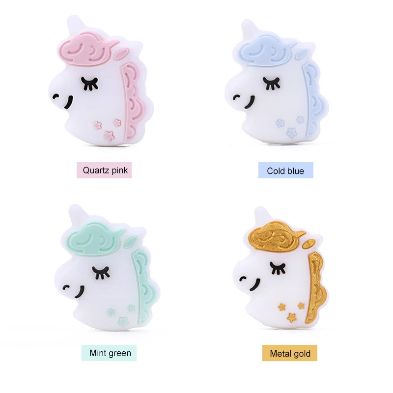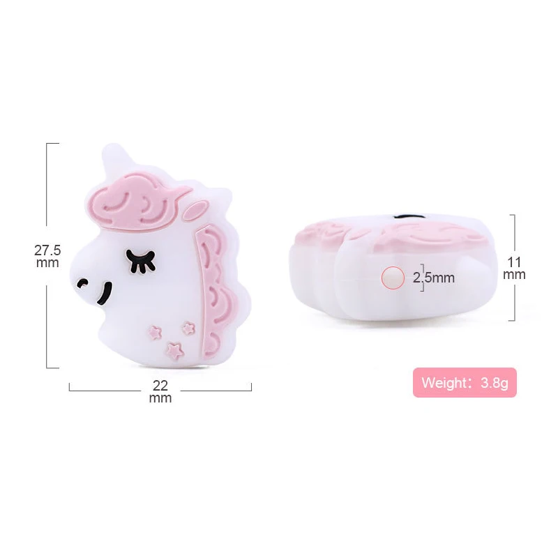 -Силиконовые бусины единорога- Упаковка: 5 шт./лот Цвета: 4 цвета Размер: 27,5*22*11 мм Материал: 1.100% пищевой силикон 2. Без BPA 3. Без ФТАЛАТА 4. Нет руководства 5. ПВХ бесплатно -Все продукты не содержат BPA, фталатов, свинца и ПВХ. Если вам нужен сертификат, пожалуйста, свяжитесь с нами и оставьте сообщение по электронной почте. -Новые продукты должны быть промыты теплой водой перед использованием, могут быть использованы после охлаждения, и должны быть очищены после каждого использования. -Легко чистить. Рекомендуется дезинфицировать салфетки для соски. -Пожалуйста, Стирайте перед использованием, пожалуйста, не ставьте изделие на детей без присмотра!