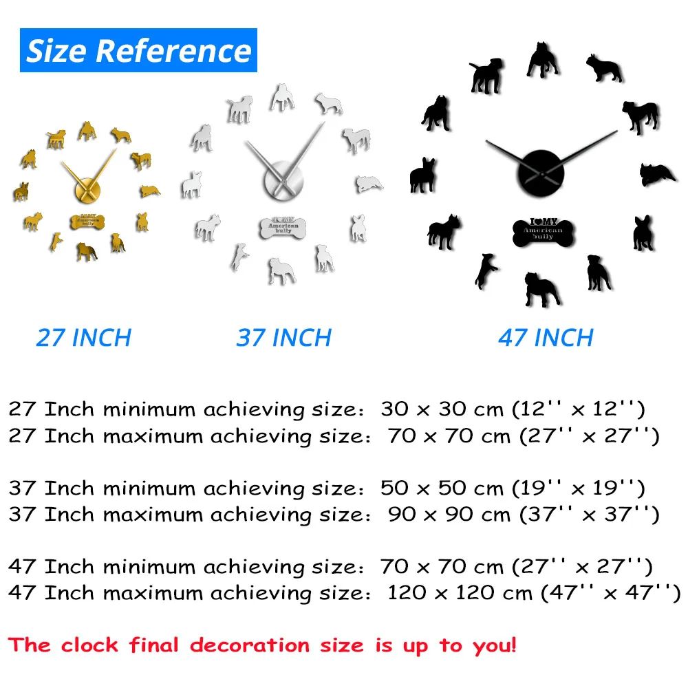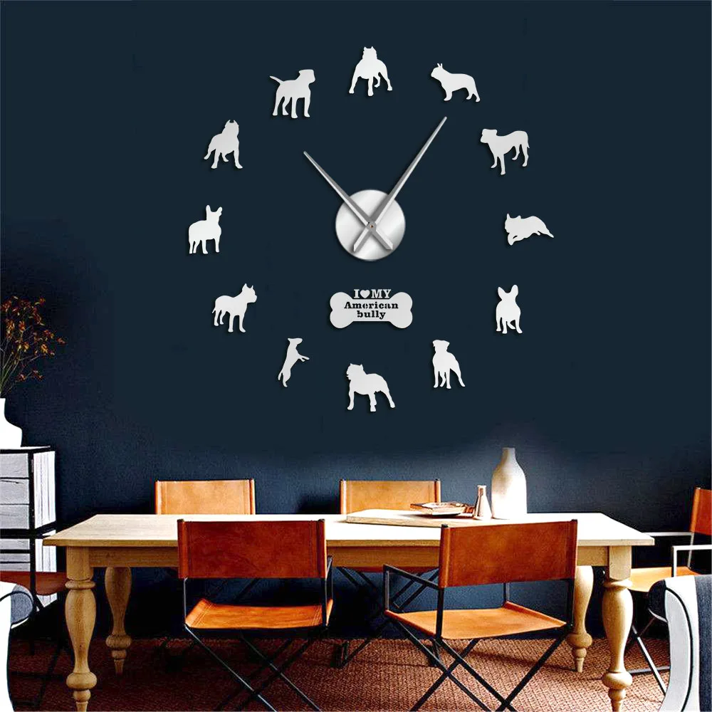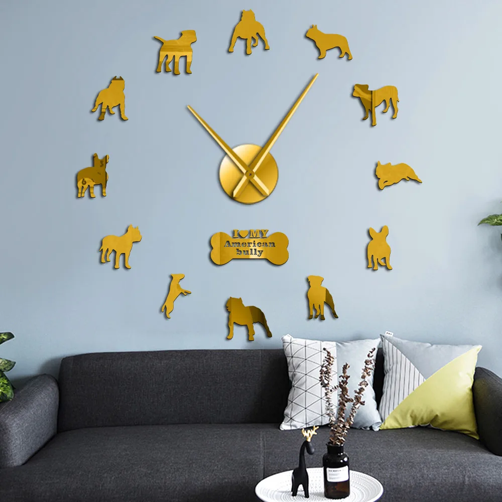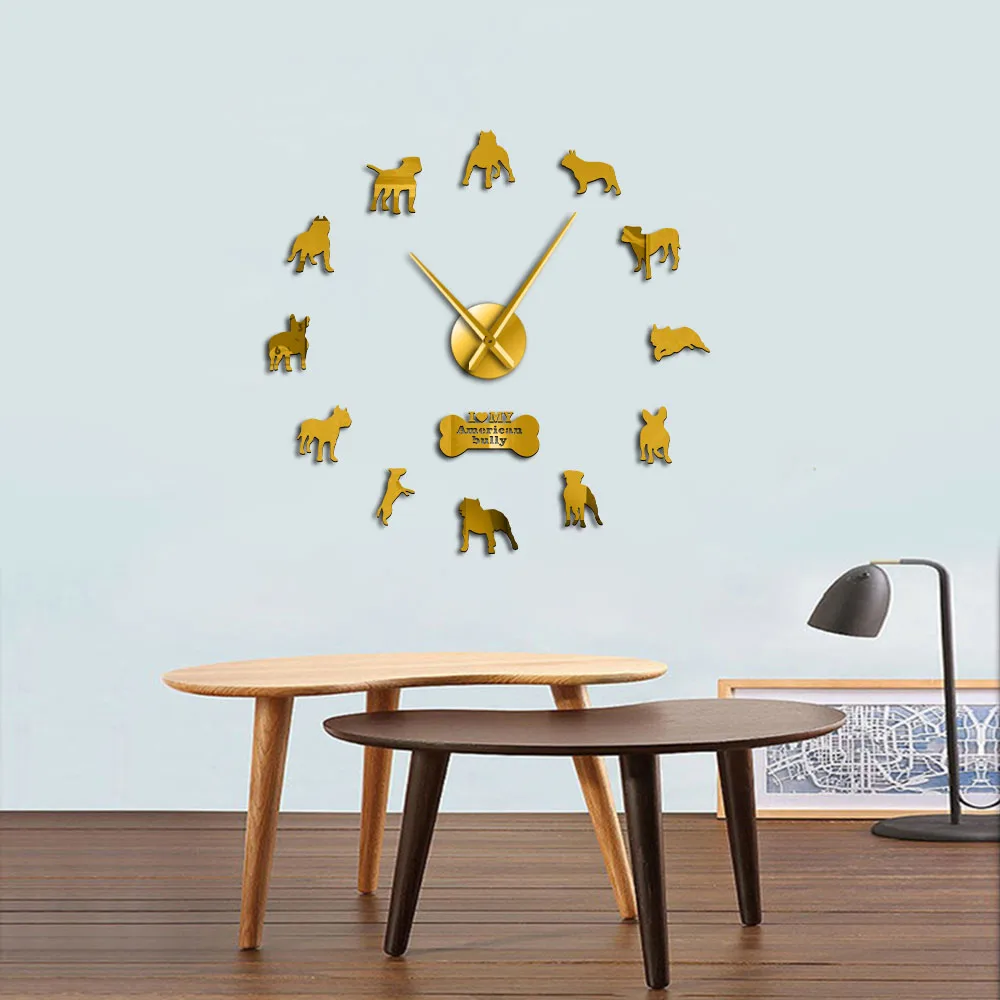 Американский хулиган акриловые Стикеры DIY гигантский бесшумные кварцевые настенные часы вы легко сможете повесить в любом месте современный большой Бескорпусные часы собака Круг три Цвета подарок