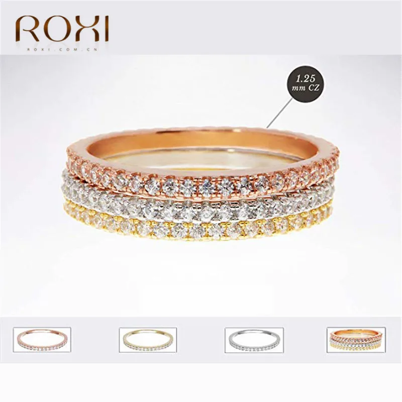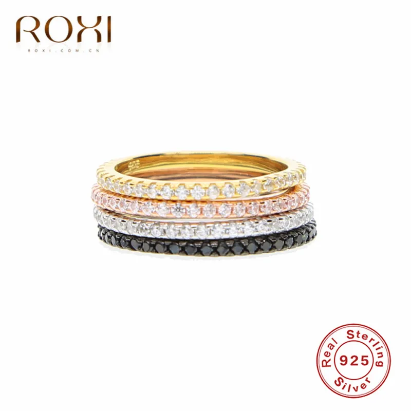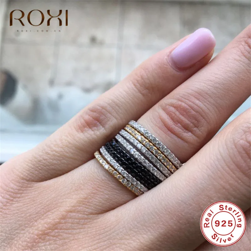 ROXI Кольцо из стерлингового серебра 925 стекируемые тонкие кольца из кубического циркония для женщин блестящее микро проложить CZ Помолвочное, обручальное кольцо ювелирные изделия