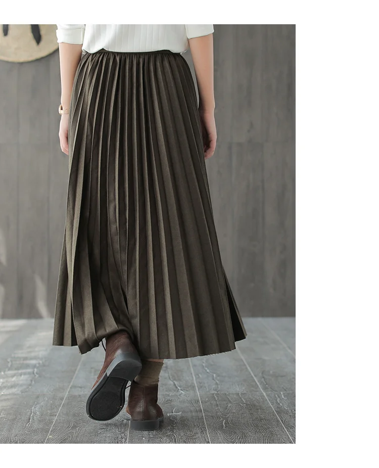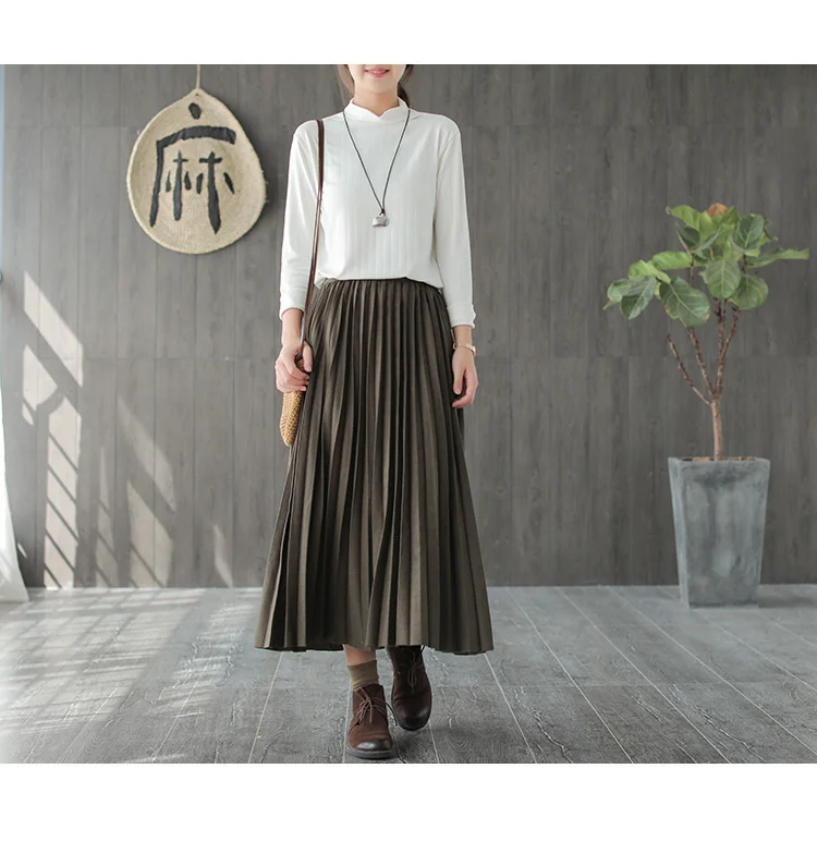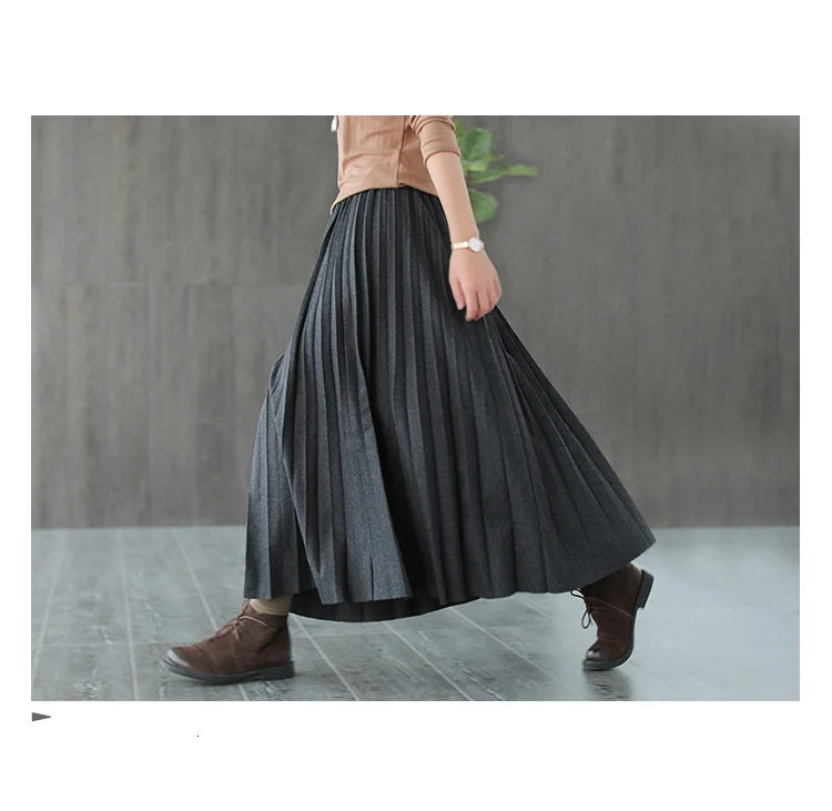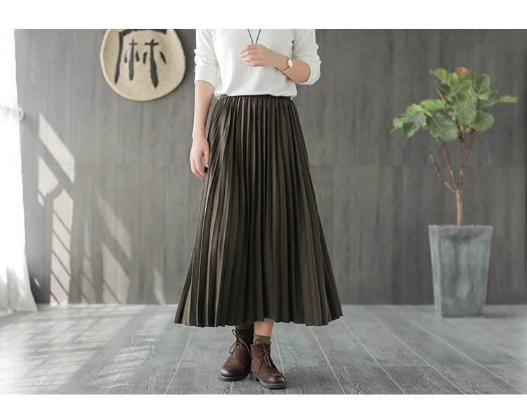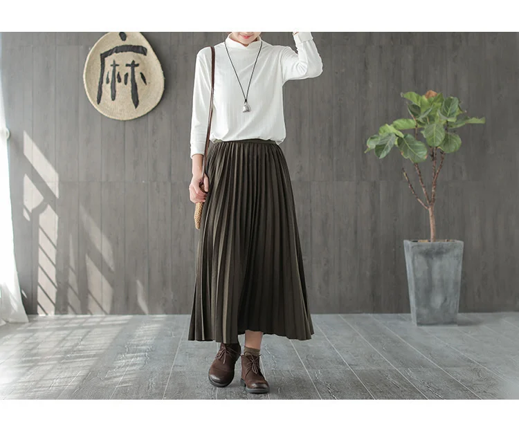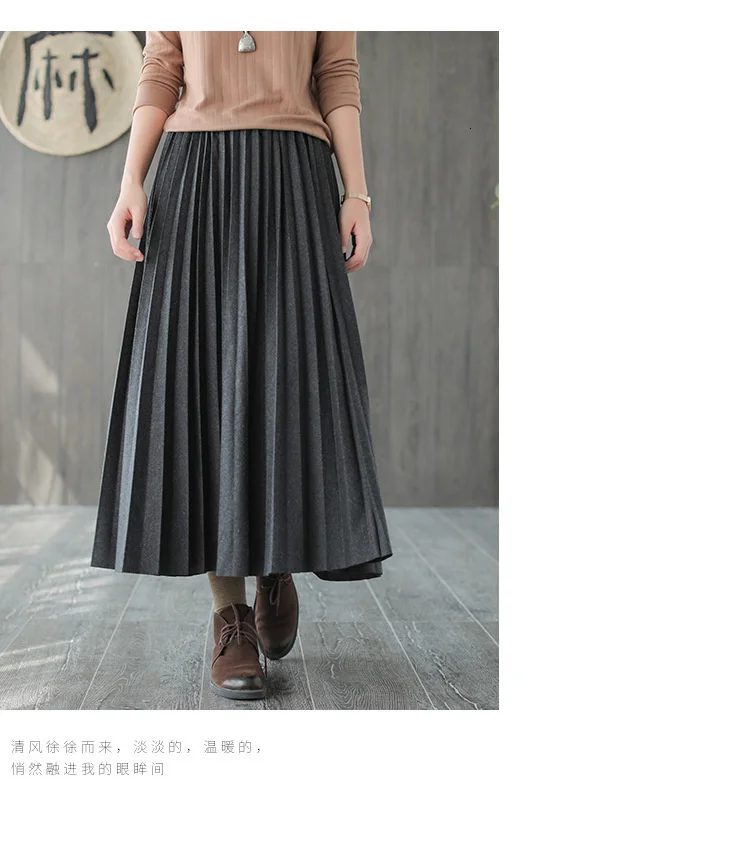 NINI WONDERLAND Осенняя трапециевидная плиссированная юбка 2021 Весенняя женская модная длинная юбка с высокой талией женские классические винтажные юбки однотонные