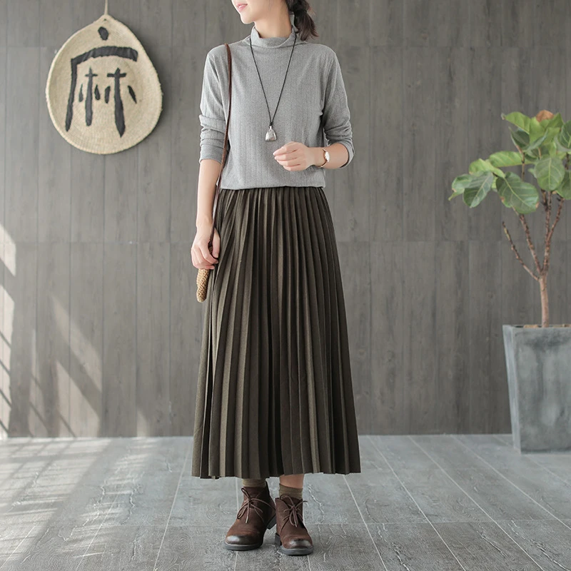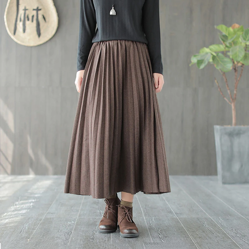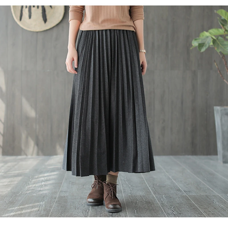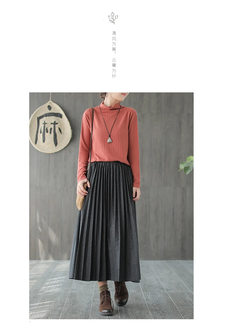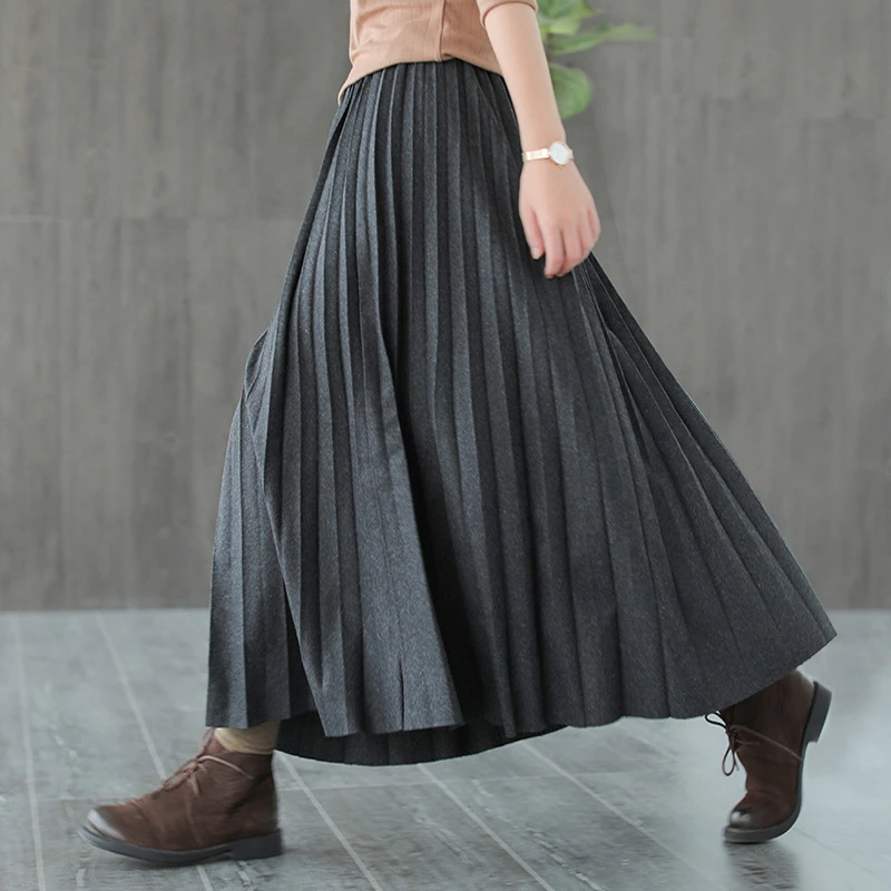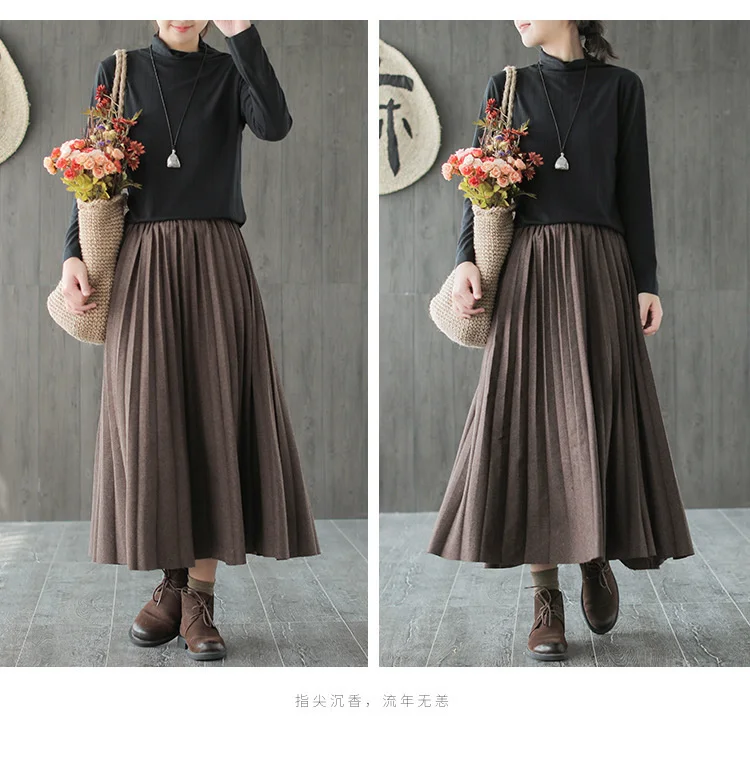 NINI WONDERLAND Осенняя трапециевидная плиссированная юбка 2021 Весенняя женская модная длинная юбка с высокой талией женские классические винтажные юбки однотонные